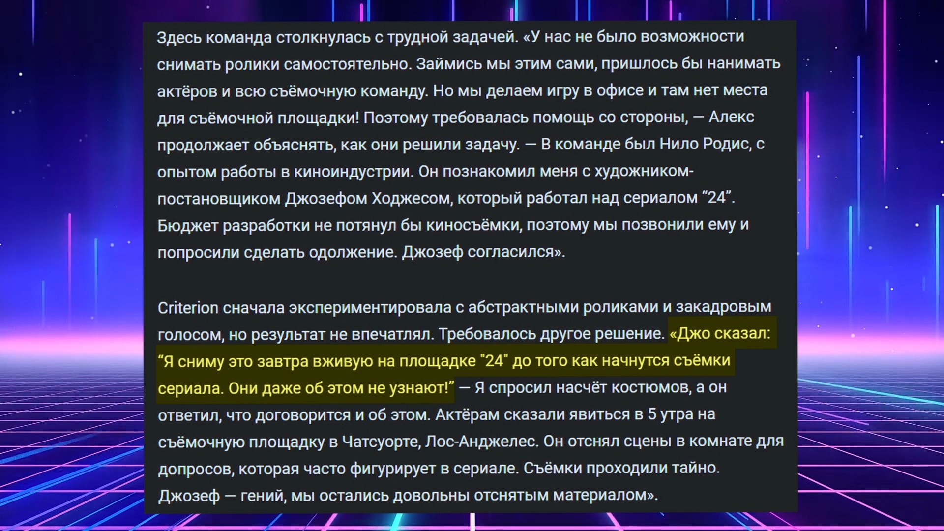 Позже команда задумалась о лайв-экшен вставках, но на тот момент у них даже не было полноценной альфа-версии игры, чтобы органично встроить сцены в сам процесс прохождения. Это косвенно подтверждает мою мысль о том, что уровни были готовы раньше, чем сформировалась цельная история.