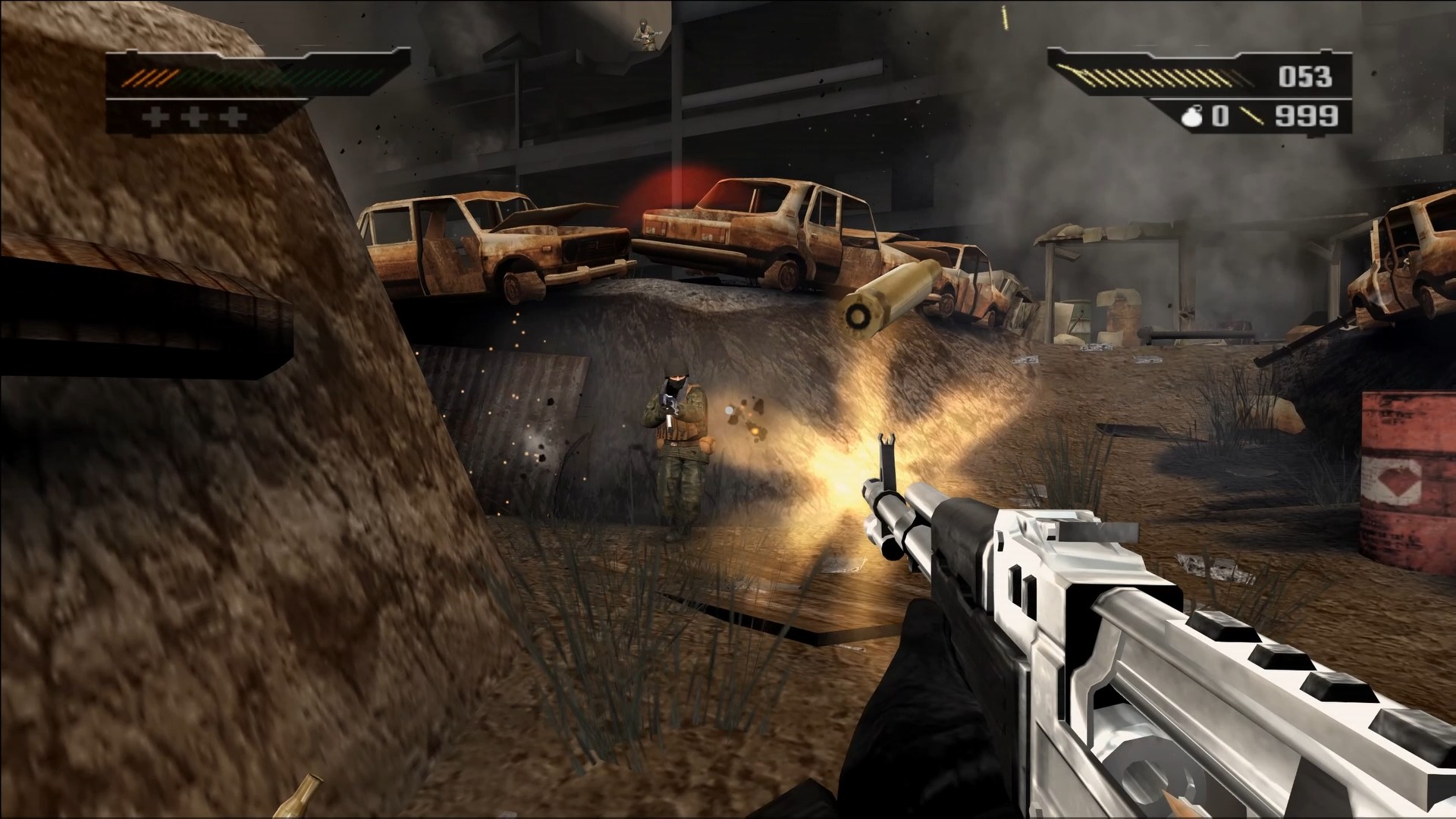 При этом сама стрельба показалась мне неожиданно пресной — отдача практически не ощущалась. Вероятно, это была проблема большинства консольных шутеров того времени: насколько помню, что-то похожее я отмечал и в другом проекте того периода, Battlefield 2: Modern Combat.
