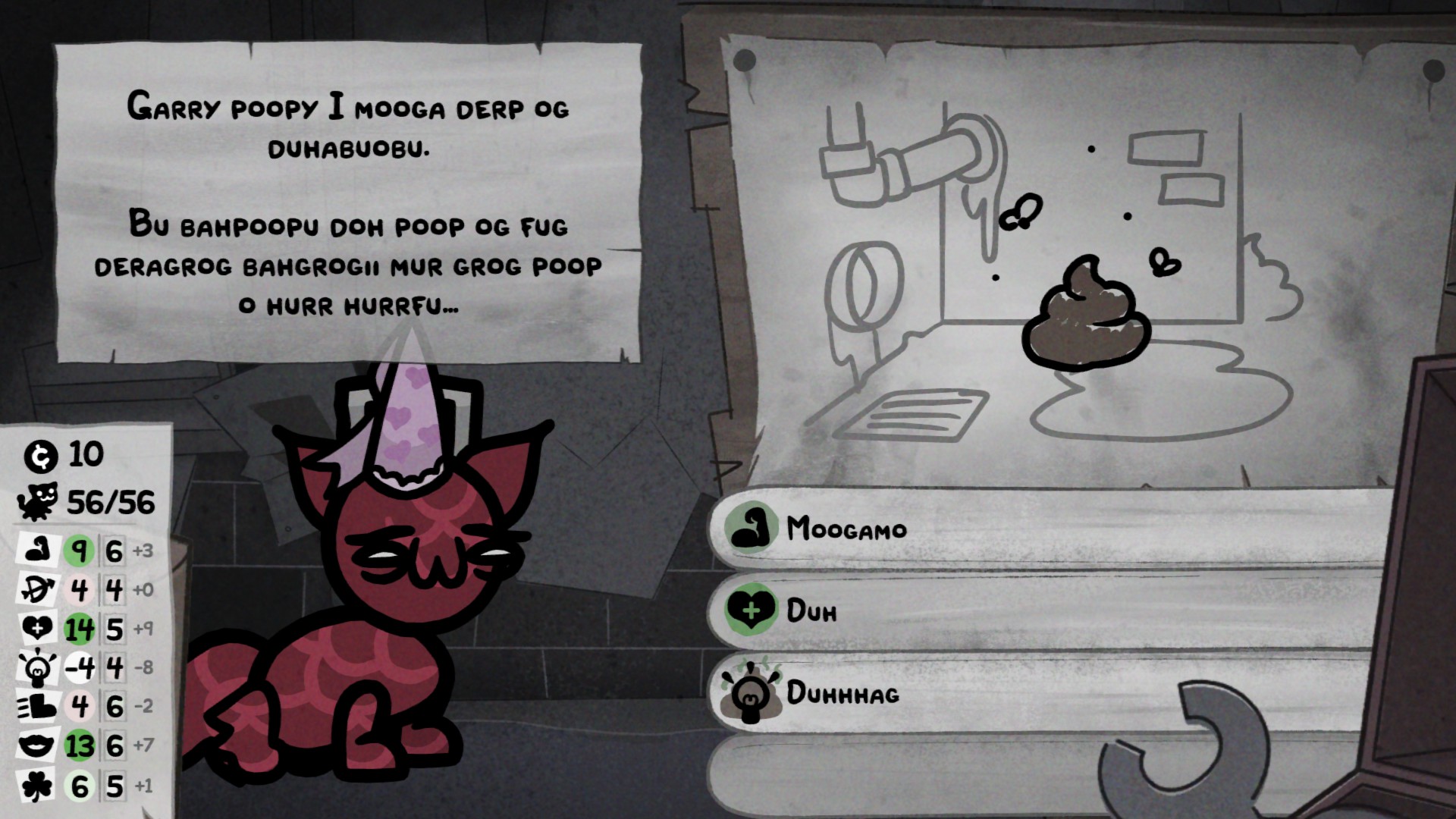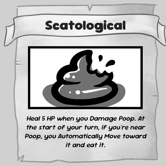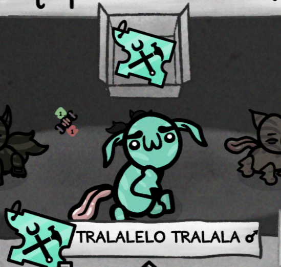 Больше всего Mewgenics похожа на, как это ни удивительно, на Binding of Isaac, и вместе с ним она делит главный минус и главный Selling point всех игр Макмиллена - визуальный стиль. В вопросах касающихся какашек игра, без сомнения, идёт даже дальше Айзека. Так как бы Айзек не старался, он ни при каких условиях не мог достигнуть такого почётного звания как "Говноед", тут это делает без особых усилий, достаточно иметь достаточно здоровья, и ваш кот получит этот, без преуменьшения, крайне уважаемый титул.