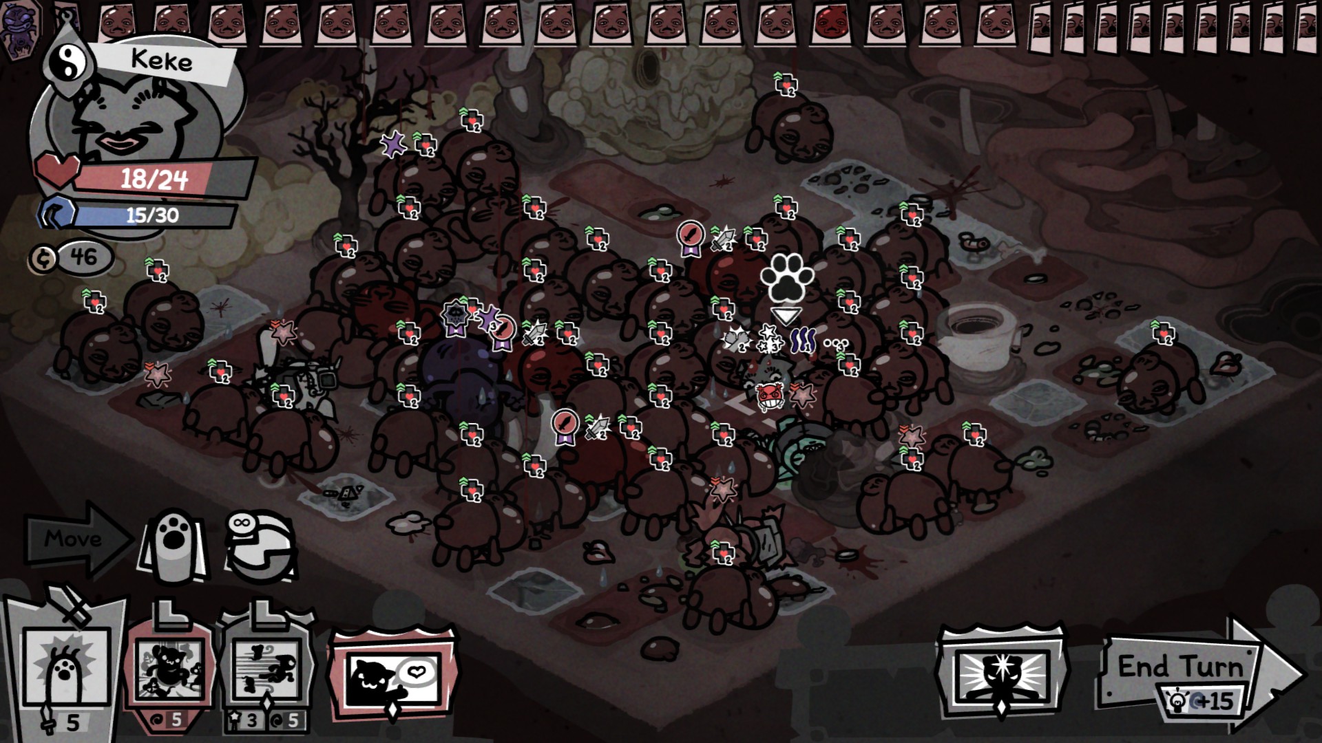 Как я говорил выше, геймплей это самое самое важное в любом рогалике, и как бы не было интересно выращивать идеальных котов и укладывать мебель в комнаты, суть это пошаговая тактика.