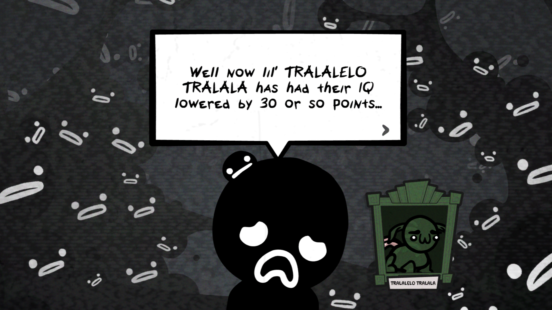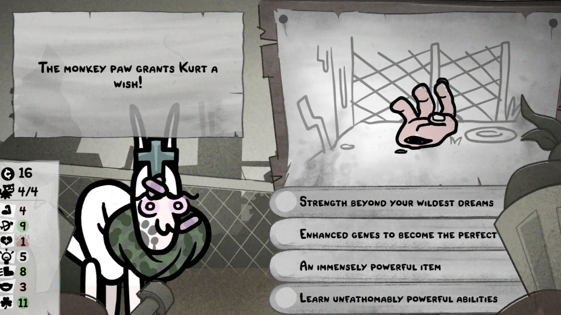 В своё время подобные вещи оттолкнули меня от Айзека, и если вам такое не по нраву, то вероятно игра вам не понравится. Говоря по серьёзному игра действительно порой выглядит достаточно неприятно, как минимум далеко не каждому будет приятно смотреть на анимации спаривания котов, которых хотя бы можно заменить на более приятные для обычного человека. Но даже с этим, игра полна типичными для Макмиллана вещами, вышеупомянутые какашки в качестве встречаются как ивенты, враги и даже как экипировка, сверху к этому идёт несколько скиллов по созданию глистов, блох и прочих паразитов. А также другие вещи, которые игнорируются мои намыленным Айзеком, но для человека не знакомого с другими играми автора наверняка вызовет, по крайне мере некоторую озадаченность.