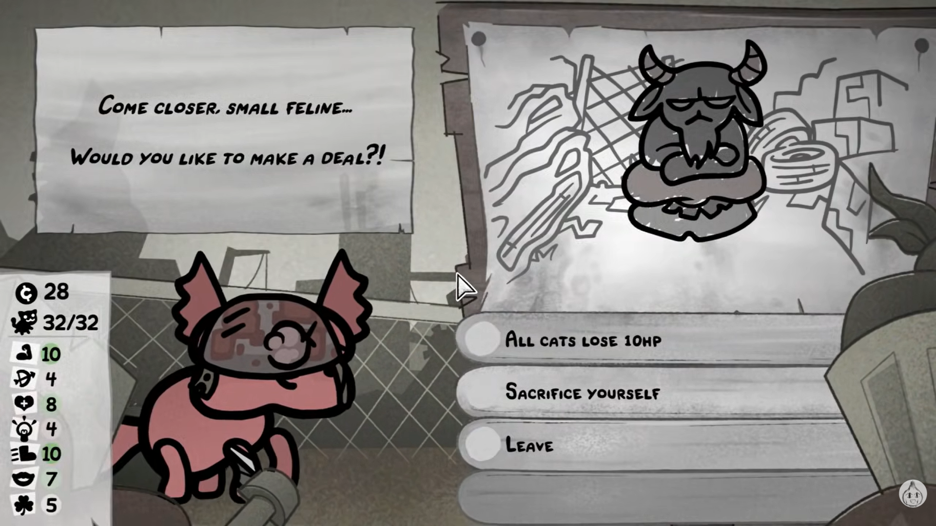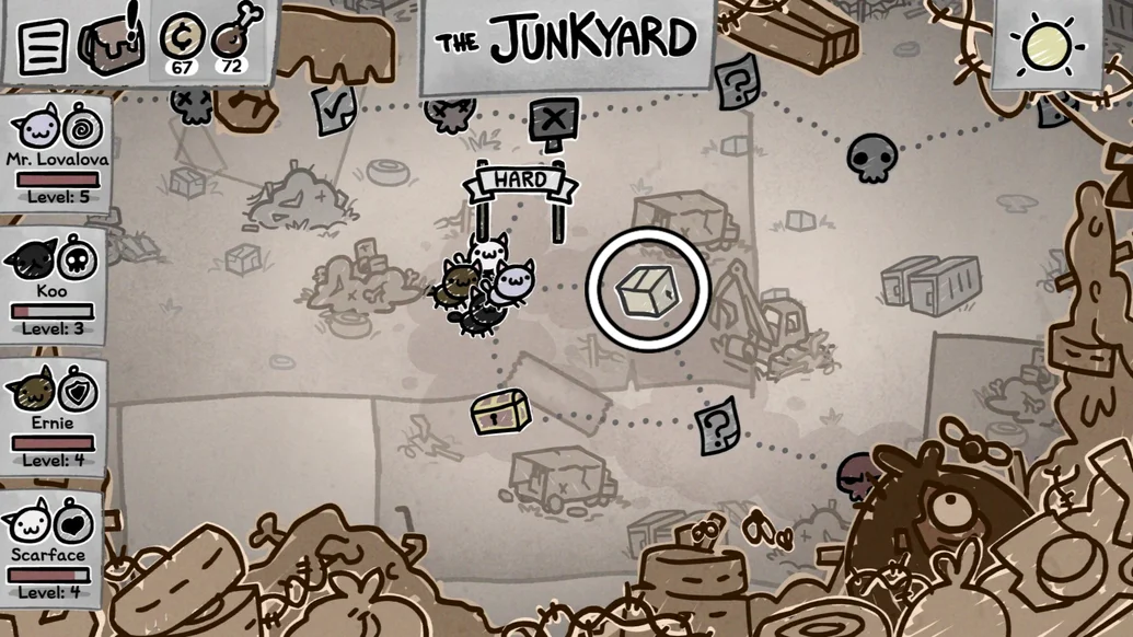 И такие игроки в целом правы, система левел апов в игре устроена так, что чем меньше у вас котов - тем они больше получают опыта и тем быстрее качаются, (а игра может запросто пройтись и в соло, настолько быстро кот может выкачаться), более того, игра всячески будет пытаться помочь вам допройти забег. Она будет давать вам более хорошие ивенты, и скорее всего даже восполнить потерю сопартийца бесклассовым котом.