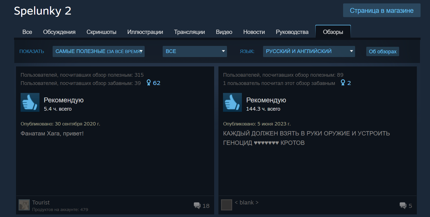 Сейчас этот канал уже долгие года как мёртв, все ведущие сделали, как мне кажется, правильное решение и выбрали реальную жизнь вместо хобби, когда оно перестало приносить им удовольствие. Но импакт этого канала и в первую очередь Хага, заметен даже сейчас. В основном это конечно касается рогалика Spelunky, в который кроме Хага у нас как будто никто на ютубе нормально и не играл.