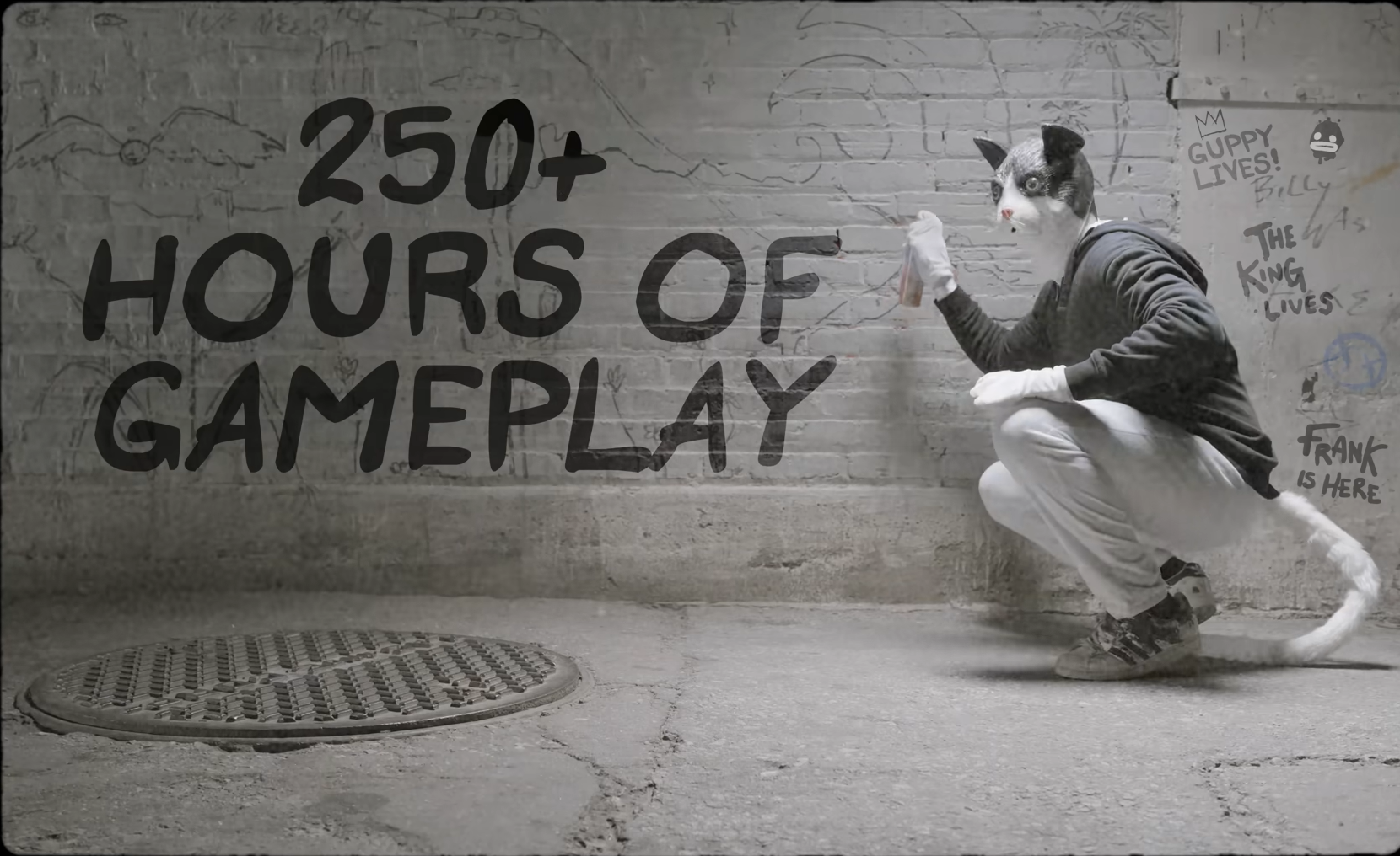 Музыка при этом в игре это вообще какой-то недосягаемый уровень. Я всегда высоко рейтил тайтлы в которых есть полноценные треки с текстом вместо просто обычных мелодий, и тут самое уместное сравнение это наверно будет MGR. Более 70% всех тем в игре я по итогу добавил себе в плейлист, настолько они шикарные, вы все наверняка уже слышали о том, насколько "Eating rats" имбовая тема и это факт. Но такое высокое качество не только боевых треков, но и музыки которая играет на базе: "Break his chains", "Scrabled", "Kat fight", "Mom i really hate you", это всё прям разные, прям крутые темы. При этом у большинства у них есть ещё стиль, они как будто взяты из чёрно белых американских фильмов, есть в них прям ощущение старины и антикварности, несмотря на то что текст в них часто про обычных котов или даже про то, как какашки смываются по трубе.