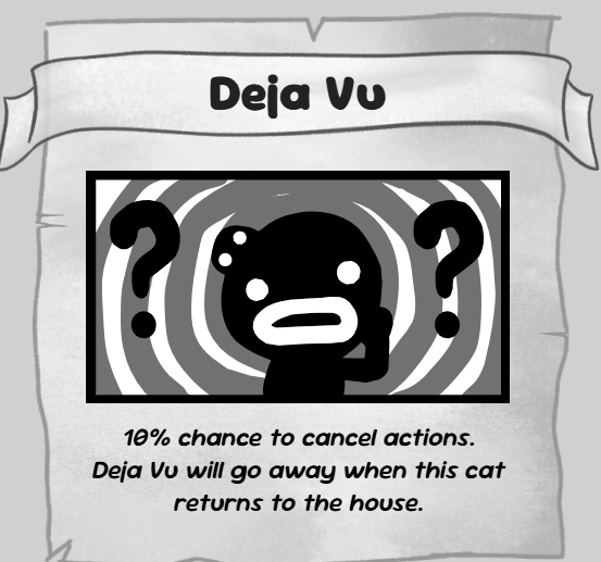 Кстати, по поводу наказания Стивена. За второй и третий рестарт Стивен не побрезгует сделать вам гадость. В начале он наложит на одного кота, а потом и на всех, дебафф "deja vu", который очень делает с вами самую страшную вещь, которая может случится у вас в игре подобного жанра - она вносит лишний рандом.