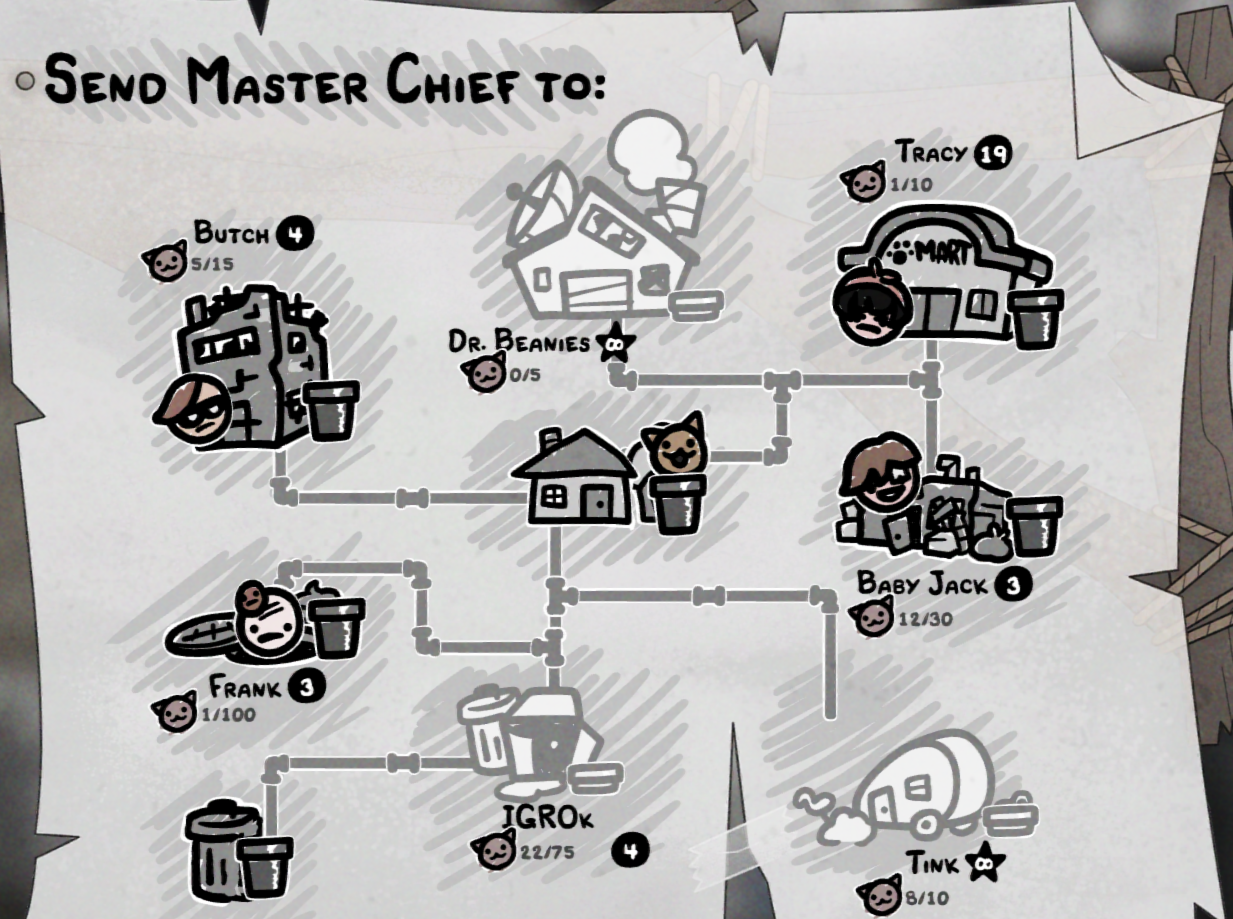 Последние три НПС самые важные, и именно им в первую очередь следует отдавать котов. Это Butch, который расширяет ваш инвентарь, Френк который улучшает ваш дом, и Джек, который продаёт вам мебель.