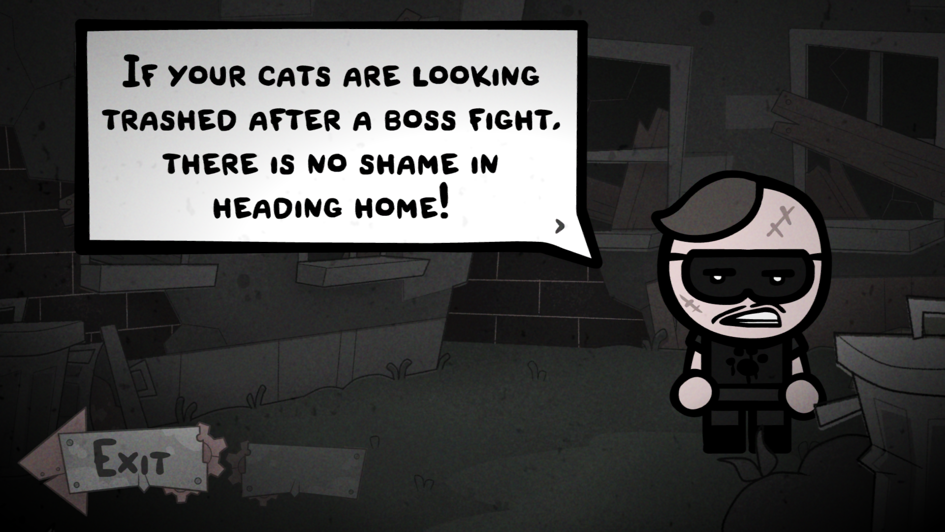 Но прежде чем говорить о боёвке, я побольше остановлюсь на NPC, взаимодействие с которыми не только позволяет вам избавиться от ненужных котов. Эти говорящие головы готовы давать вам разного рода награды за четвероногих друзей, и даже основной сюжет двигается именно из разговоров с ними. Но котов которых вы можете отдавать им не так уж и много, а так как наибольшую ценность представляют из себя именно коты которые побывали в забегах, то это максимум 4 кота в день. Не так уж и много, учитывая что таких котов ветеранов один из NPC может требовать 50 штук.
