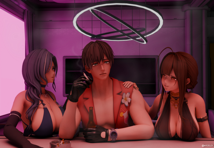 И я только сейчас понял, что ранняя шутка про Sunrider 4 была не совсем уж и шуткой. Серьёзно, главные герои ставшие дед инсайдами возобновляются со старой вайфу гвардией ради с виду простой цели, что в ходе сюжета перерастает во что-то очень глобальное. Только разница в сеттингах и деталях, однако это очень даже хорошо, ведь в гача проектах у нас и так есть: Герой инопланетной расы, что готов пойти на крайности ради спасение мира; Человек, что доказывает богам силу человечества лишь револьвером и звоном стальных яиц; Двух близнецов киноманов с особой аугметикой; Буквально помойная панда; Аргентинского стратега повинного в преступлениях против человечности в Казделе, ныне работающего в фармацевтической компании и прораб 12 разряда из филиала... А смотря на Командира, я жду, когда в свободное время он возьмёт гитару и с Т-Куклами из DEFY начнёт напевать "2000 баксов за сигарету" или "Караван". Это реально тот случай, когда "фансервис" хочется не для себя, а для персонажа, потому что жизни лучшей ему в сценарии не прописали.