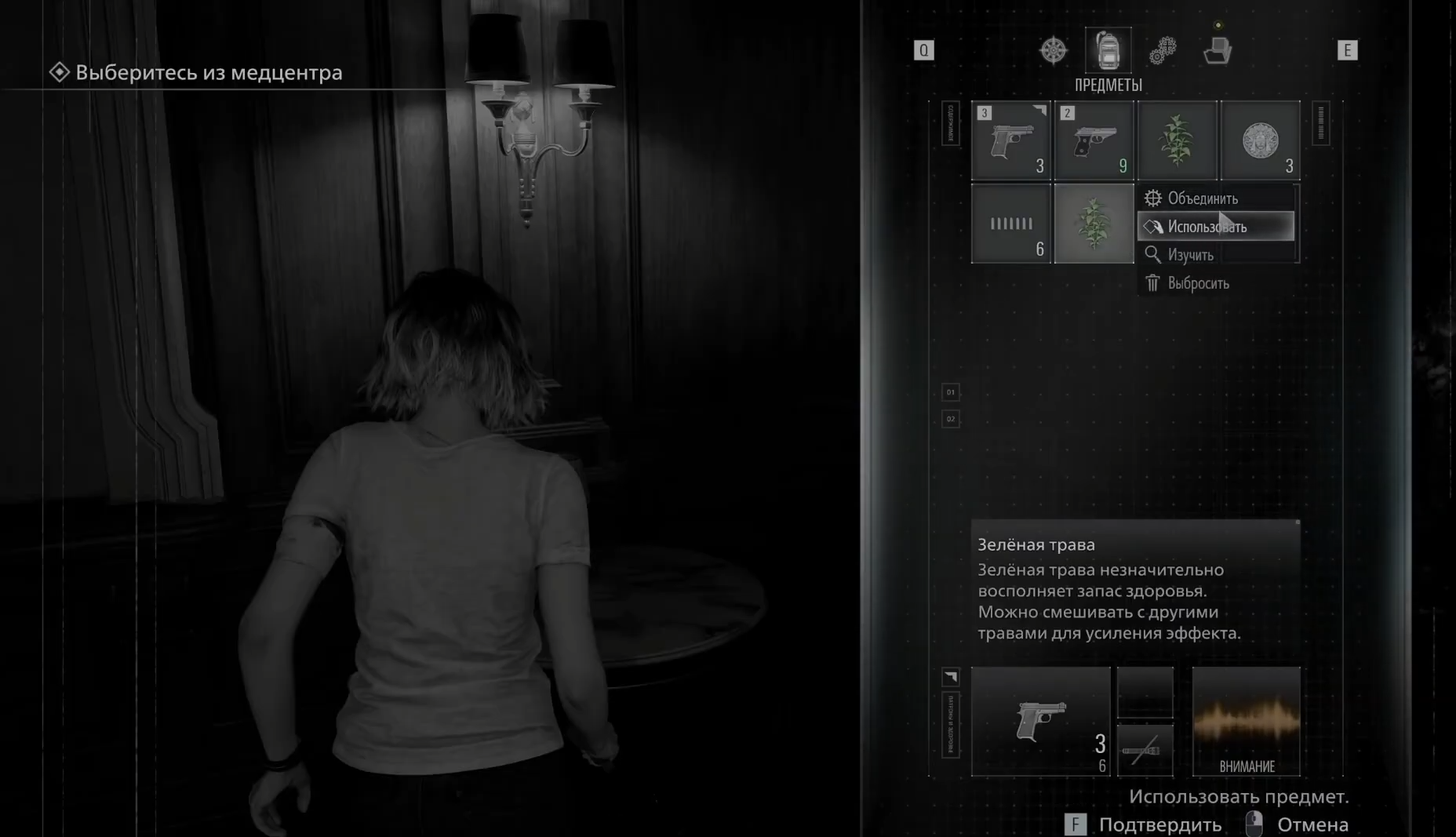 Причём забавная ситуация получилась. Довольно долго я ходил с первым пистолетом и потом сильно удивился, что можно практически в начале прохождения лечебницы в лаунж-баре найти пистолет Грейс, который круче по всем параметрам.