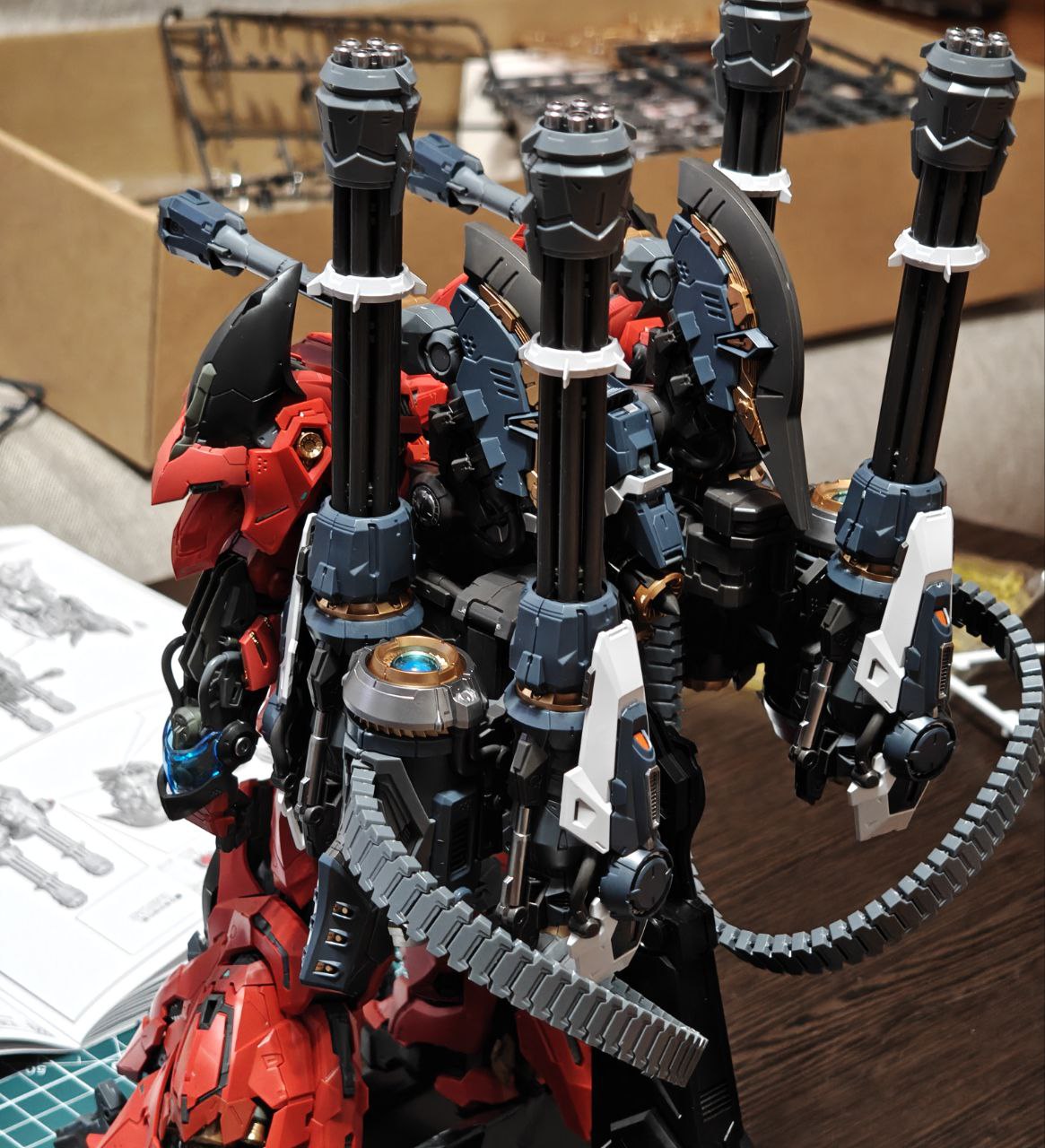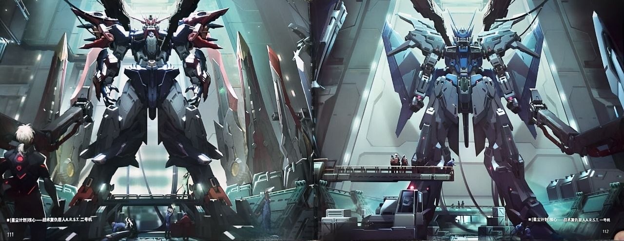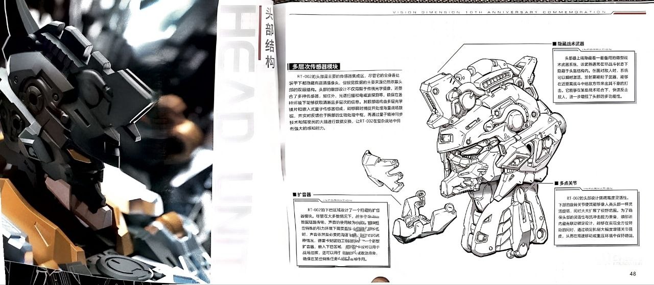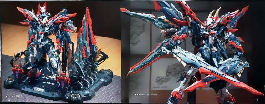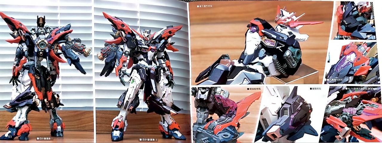 + помимо деталей для сборки меха, наклеек, и инструкций в комплекте идет толстенный артбук с историей создания этой модели, и, как я понял, историей мира в которой данный мех существует. Но, к сожалению, этот артбук полностью на китайском, и даже с переводчиком прочитать его почти невозможно.
