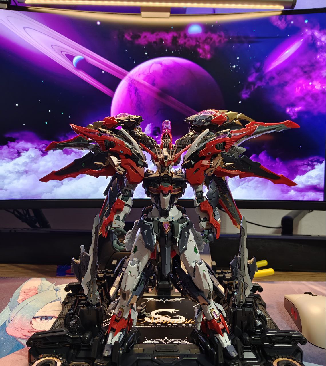 Немезис оказался первым моим модель китом который я не просто собрал, но и полностью обклеил декалями! Полная сборка заняла больше 20 часов, его дизайн я до сих пор считаю одним из самых крутых в моей коллекции. А то, как все было упаковано, кроме как «лакшери» и назвать нельзя. Ведь внутри этой коробки были еще 2 коробки — одна непосредственно под Меха, другая под его «Бэкпак», который так же является и набором оружия!