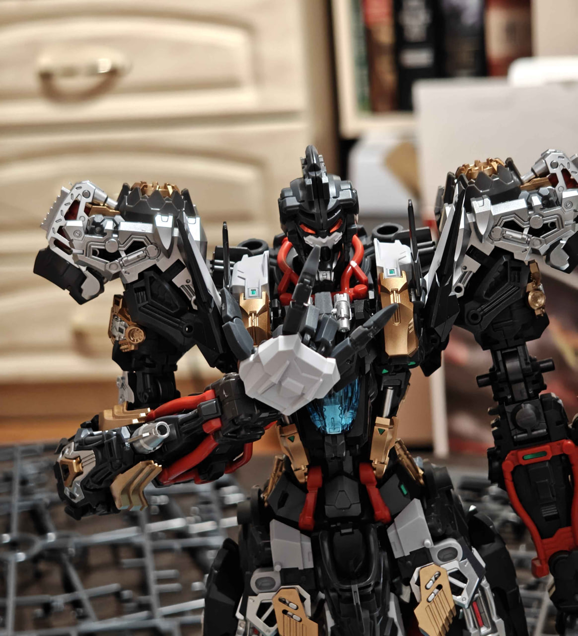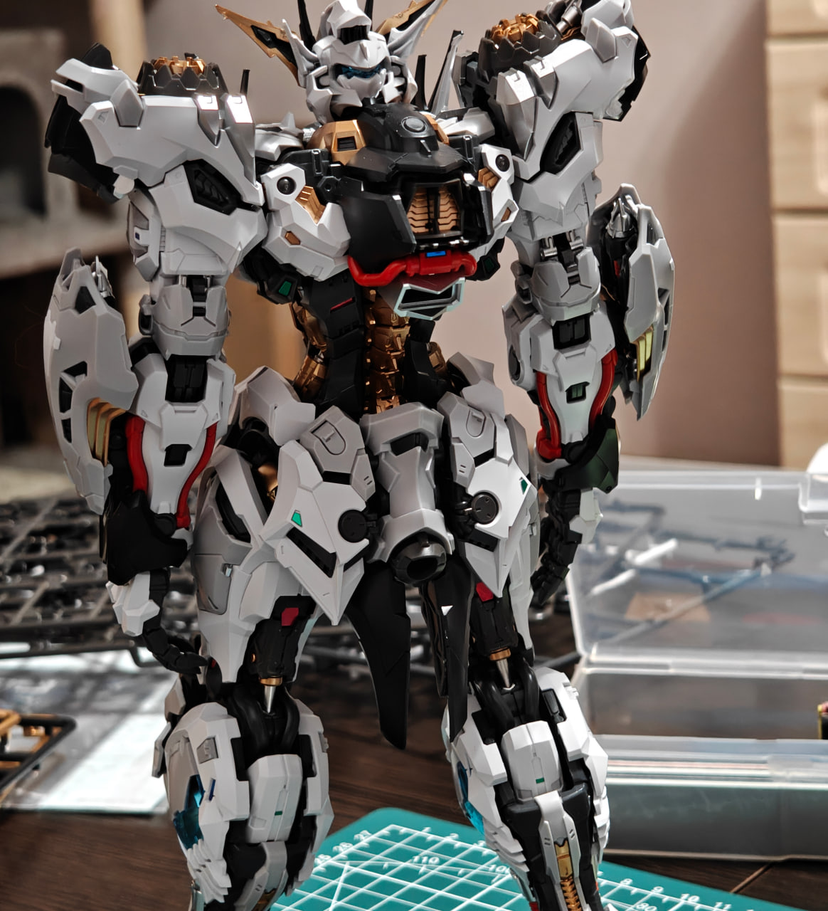 Но, как я написал выше — это самая сложная модель, которая когда-либо была у меня на столе. И это не могло не аукнуться. У меха открывается кокпит, и я его открыл. А ЗАКРЫТЬ НЕ СМОГ! Из-за этого пришлось полностью разбирать собранный торс и пересобирать его с нуля, что суммарно заняло примерно 2 часа, 1.5 из которых заняла разборка, т.к все нужно было сделать очень аккуратно, чтобы не поломать.