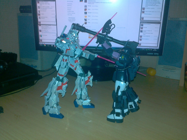 А в последствии мной были приобретены более продвинутые, но уже китайские Юникорн и Заку-2. По грейду они относятся уже к MG (Master Grade)