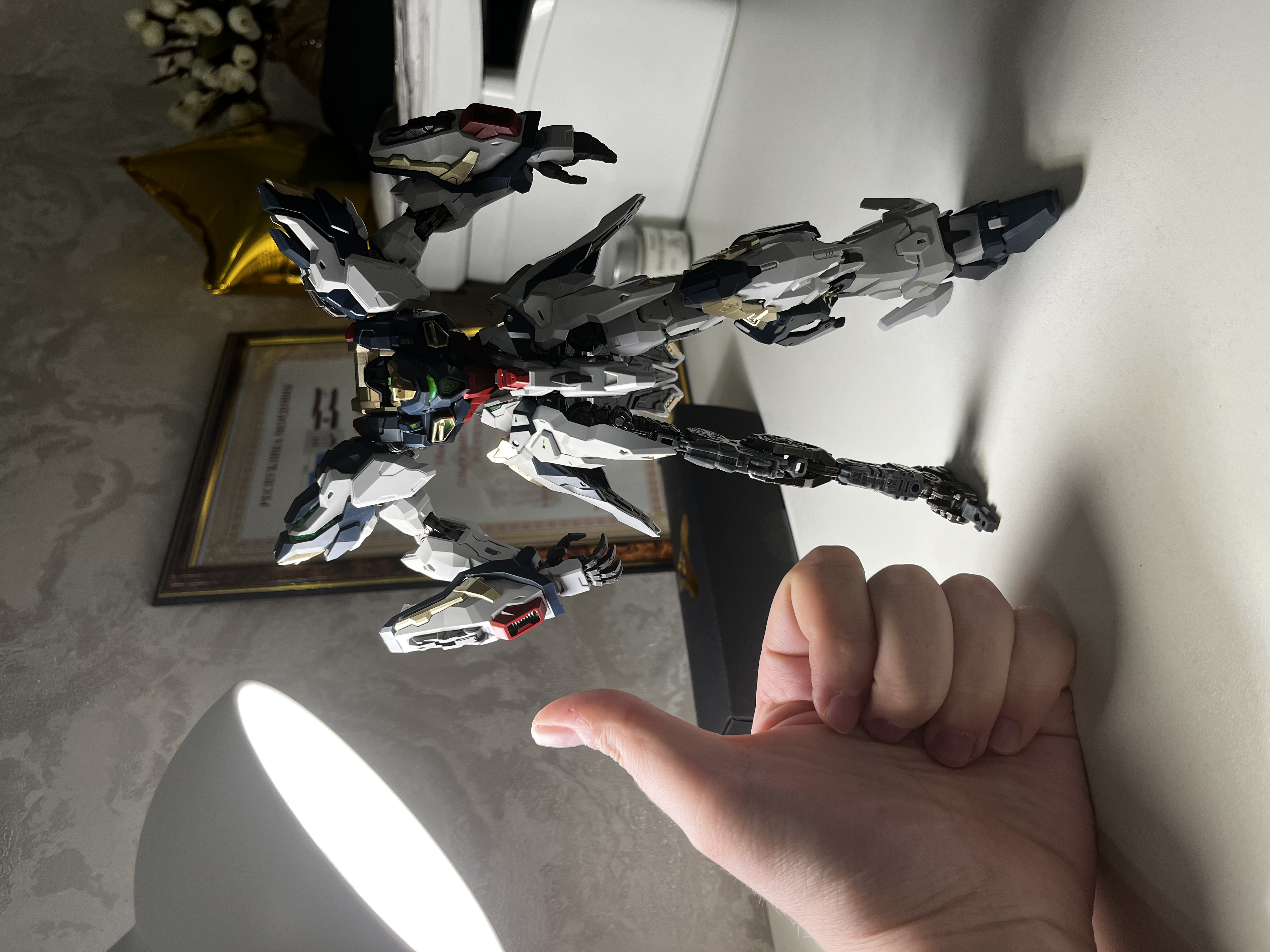 И еще такой нюанс — на оригинальные китайские модели не распространяются Грейды, которые придумал Бандай. Поэтому вся моя коллекция это масштаб 1/100, и Фенрир 1/72, но условно их всех можно отнести именно к MG. А масштаба 1/72 у Бандай вообще не существует