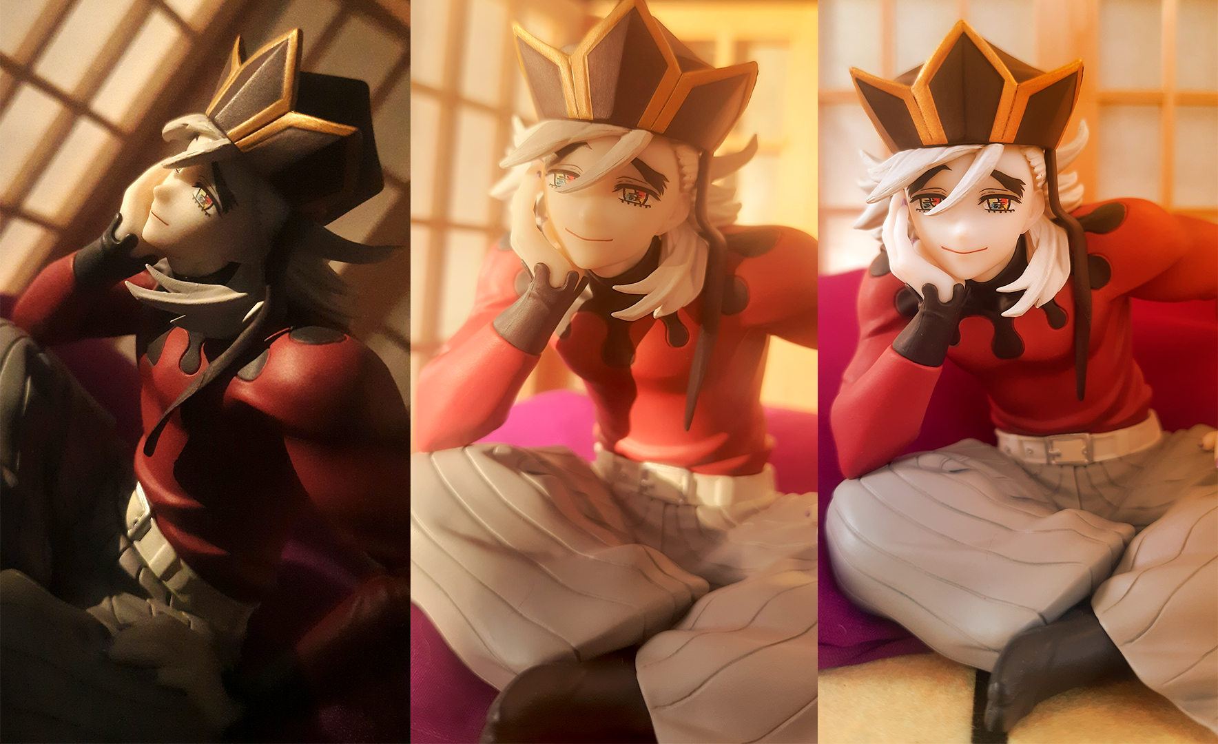 И пока мы далеко не ушли от темы Demon Slayer-а, я вкину ещё один «стоппер» от Furyu, на этот раз с Доумой. Особой причины нет, мне просто хотелось сравнить размеры фигурок «Фурью» и «МегаХаус». Шить я умею ещё хуже, чем клеить макеты, но всё же сделала для Доумы его иконическую подушку: >