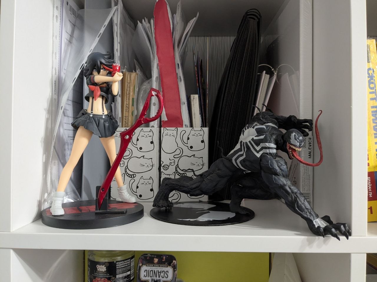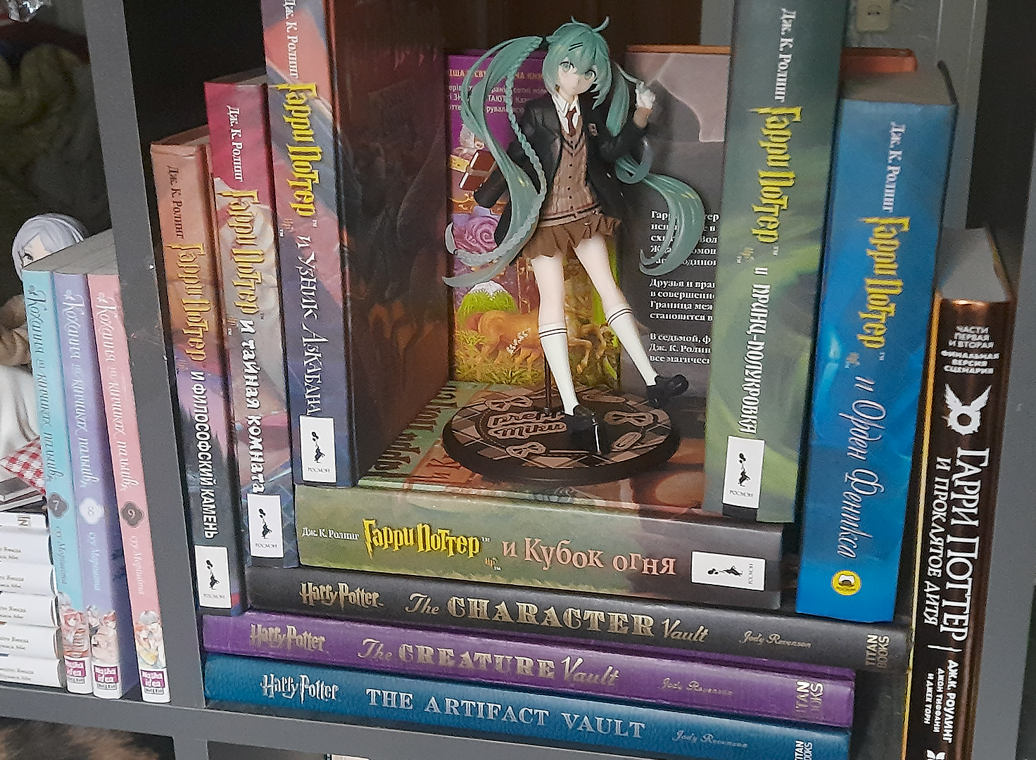 Но есть ещё один вариант — целеустремлённо покупать фигурки, у которых вообще НЕТ базы, и которые могут украсить тематическую полку с мангой, красиво сядут на какую-нибудь книжку или побудят вас заняться созданием собственных креативных выставочных стендов.