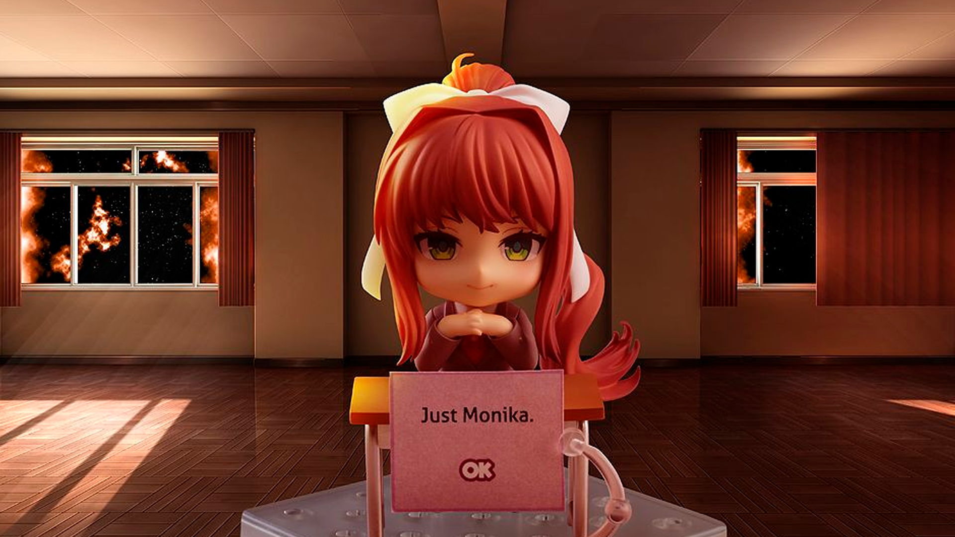 Результат — убил. Зато теперь я счастливая обладательница моего первого самодельного стенда и уже нащелкала кучу прекрасных фотографий. В Интернете, кстати, продаются выставочные стенды с разными темами и предметами, так что обладатель нендороидов может купить школьный набор с партами и всем прочим, чтобы воссоздать сценку из «Доки-Доки»… Главное, не зовите Юри или хотя бы не давайте ей нож…