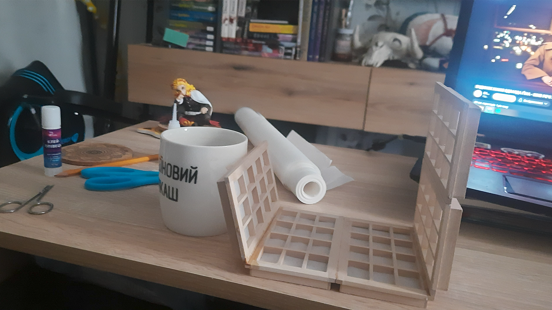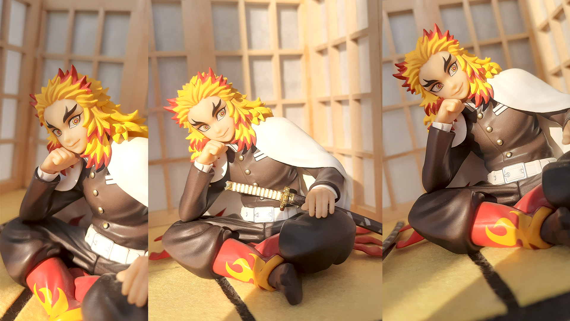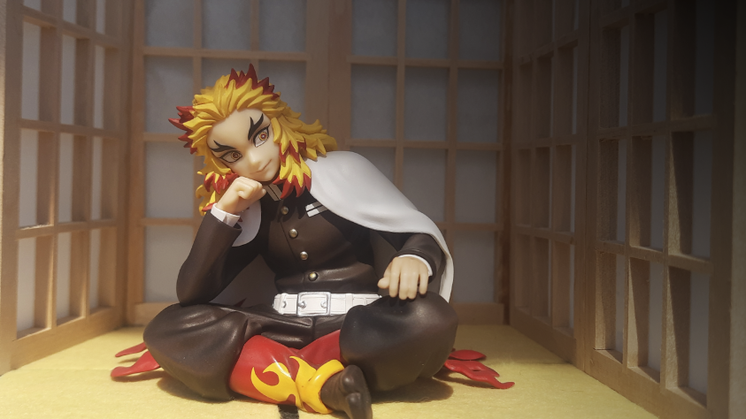 Фигурки из этой линейки сподвигли меня на создание собственного стенда. Дождавшись, пока мой Ренгоку от G.E.M. приедет домой, я взялась за ножницы и попыталась вспомнить всё, чему меня учили на макетировании.