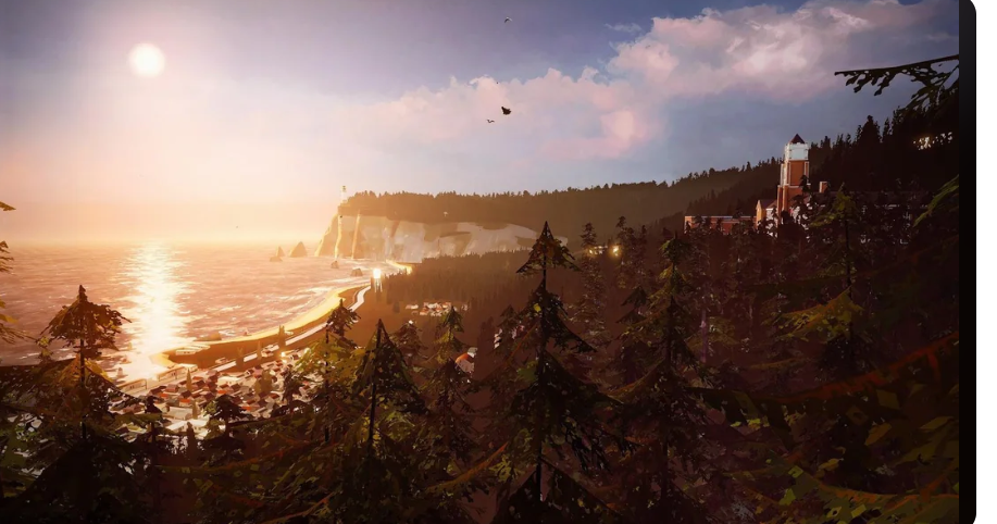 В эпоху Unreal Engine 5 и стремления почти всех разработчиков давать нам лютую реалистичную картинку, визуальный стиль LIS в очередной раз напоминает, что игры были созданы во многом и для того, чтобы показывать миры, которые отличаются не только сеттингом и лором, но и внешним видом. И графический стиль первой части можно даже назвать в какой-то мере уникальным. Мир одновременно реалистичный, объемный, но также и…мультяшный. Все эти размытые текстуры, некоторые небрежные модельки и листва, о которую можно порезаться — все это создает атмосферу почти что сна в некоторые моменты. А какой здесь закатный солнечный свет… Это настоящее волшебство. Именно после первого LIS я особо полюбил закатное солнце. Каждый раз, как выпадает похожая погода я выхожу из дома и гуляю часа полтора просто любуясь пейзажем, настолько это красиво. Так что во многом я возвращаюсь сюда из-за стиля, потому что он живой. В игре полно записок, рисунков, дневников, которые и выглядят так, будто с ними работал живой человек, вырисовывая все ручкой на бумаге, а не использовал шаблоны в графических движках или нейронки. Даже «текстуры» фотографий, когда Макс их рассматривает — какие-то неровно отсвечивают, какие-то затертые или даже рванные. В общем стиль LIS — это настоящая находка, которую в будущем не смогли в полной мере повторить сами оригинальные авторы, а приемники в лице Deck Nine и вовсе ушли в другую сторону.