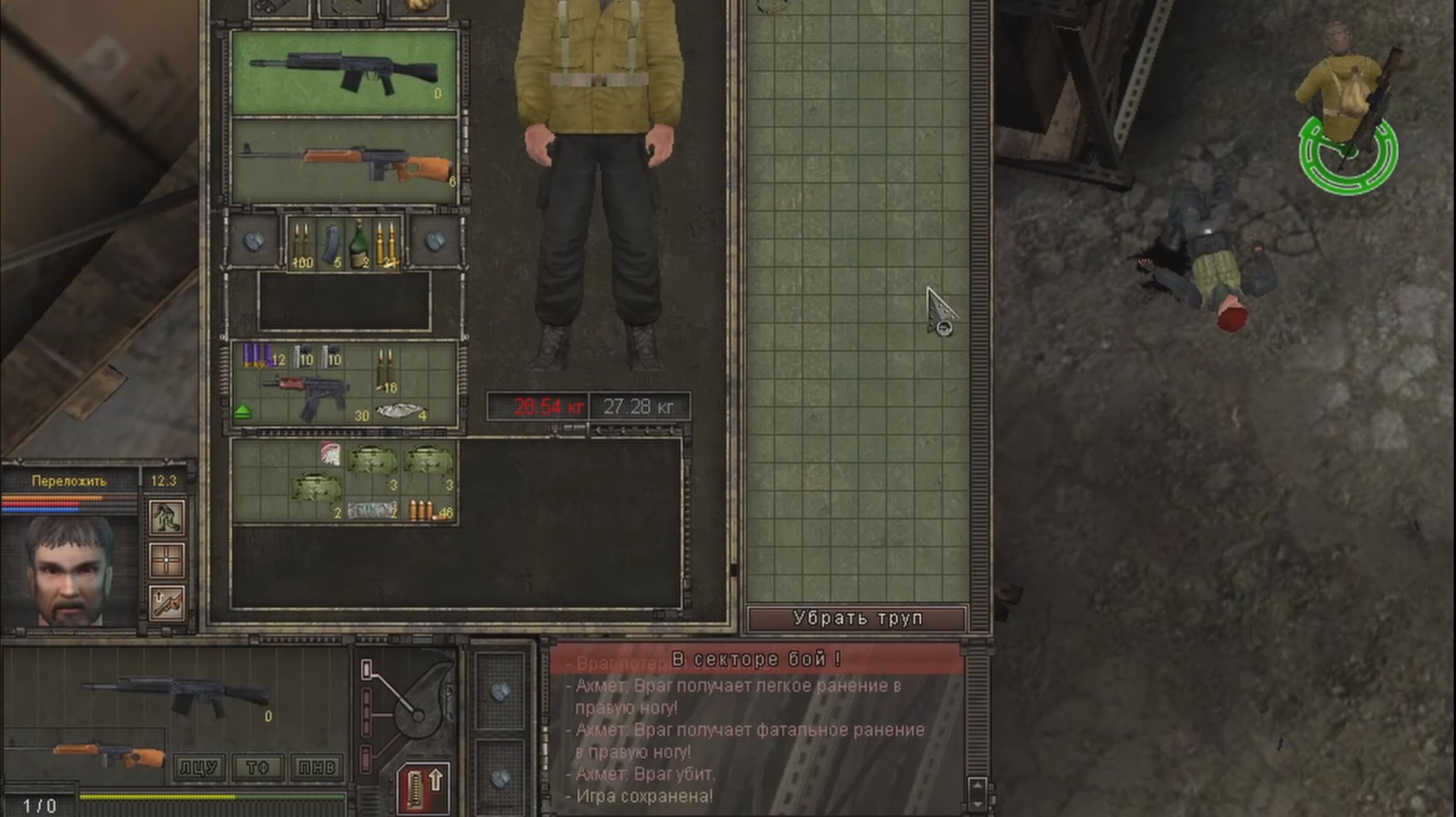 На этом этапе разработчики ещё пытались в какую-то нелинейность и у нас есть целых два способа прохождения. Можно раздобыть оборванное шмотьё, прикинуться ищущим работу алкашом и под таким прикрытием проникнуть в здание. Неплохой способ. Именно им воспользовался книжный Ахмет. Однако в игре взрыв уничтожит здание, а значит и обмародёрить его не получиться. Меня такой расклад не устраивал, поэтому я перестрелял всю охрану и снова забил весь инвентарь новым снаряжением.