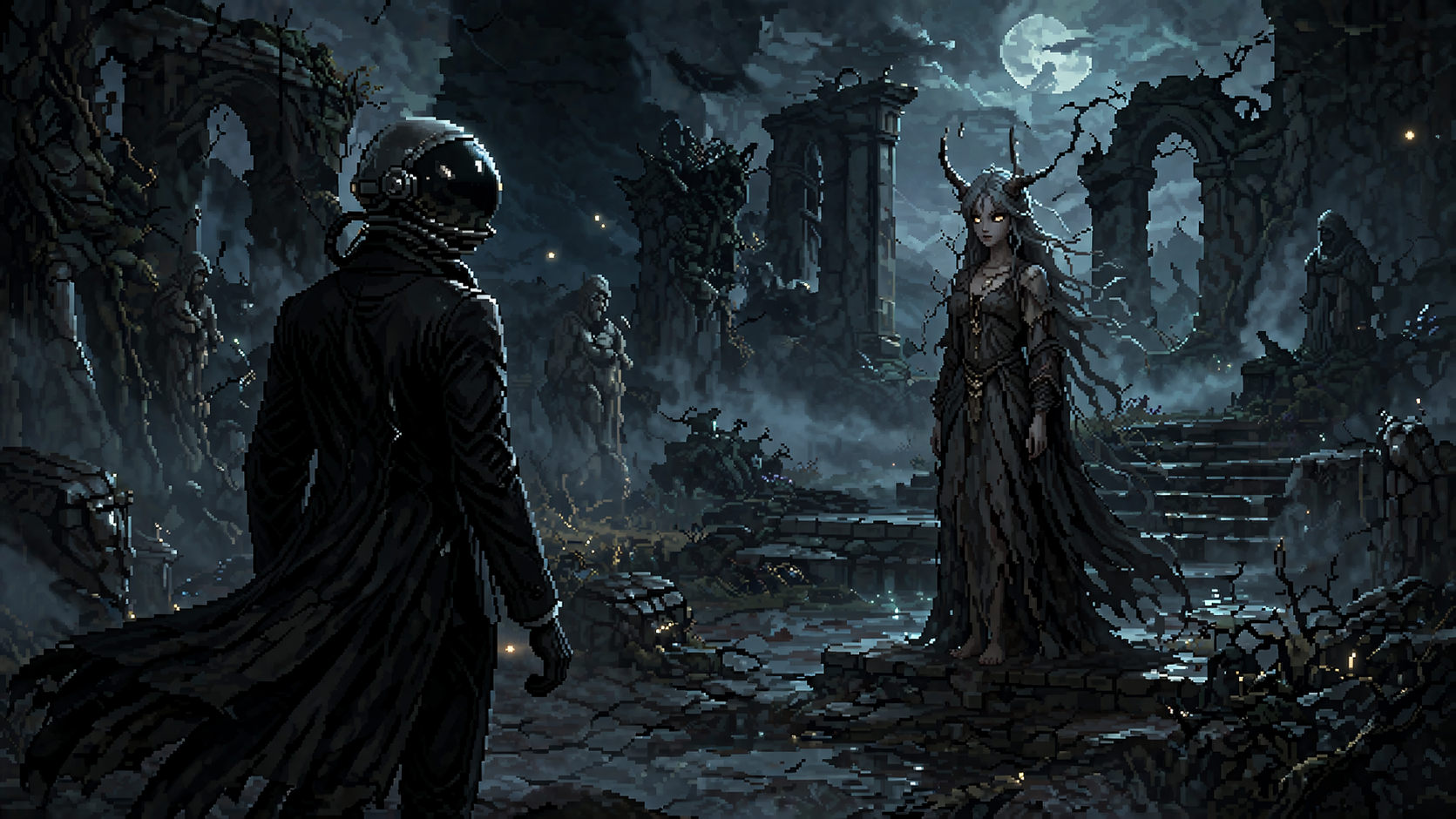 Они здесь не выглядят случайным фэнтезийным декором, который поставили просто потому, что «ну надо же чем-то заполнять локацию». Наоборот, это одна из тех деталей, которые усиливают ощущение, что у этого мира есть тяжёлая история, какой-то свой излом и своя боль.