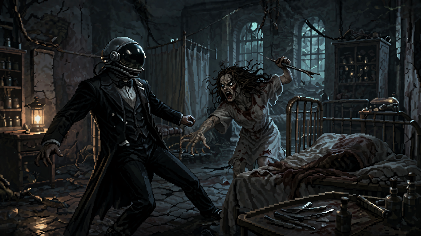 Какая ещё девчонка с рожками? Какое нападение пациентки в самом начале? Какие статуи? А можно по существу, с живыми эмоциями и без ИИ?