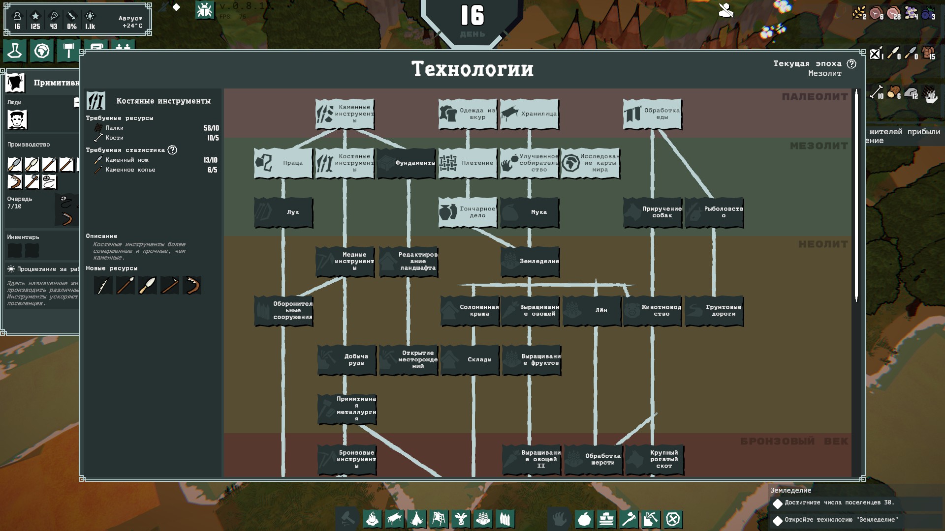 А ещё надо, чтоб племя наработало так называемый "опыт". Это означает, что через лапы наших юнитов должно пройти некоторое приличное количество ресурсов или предметов.