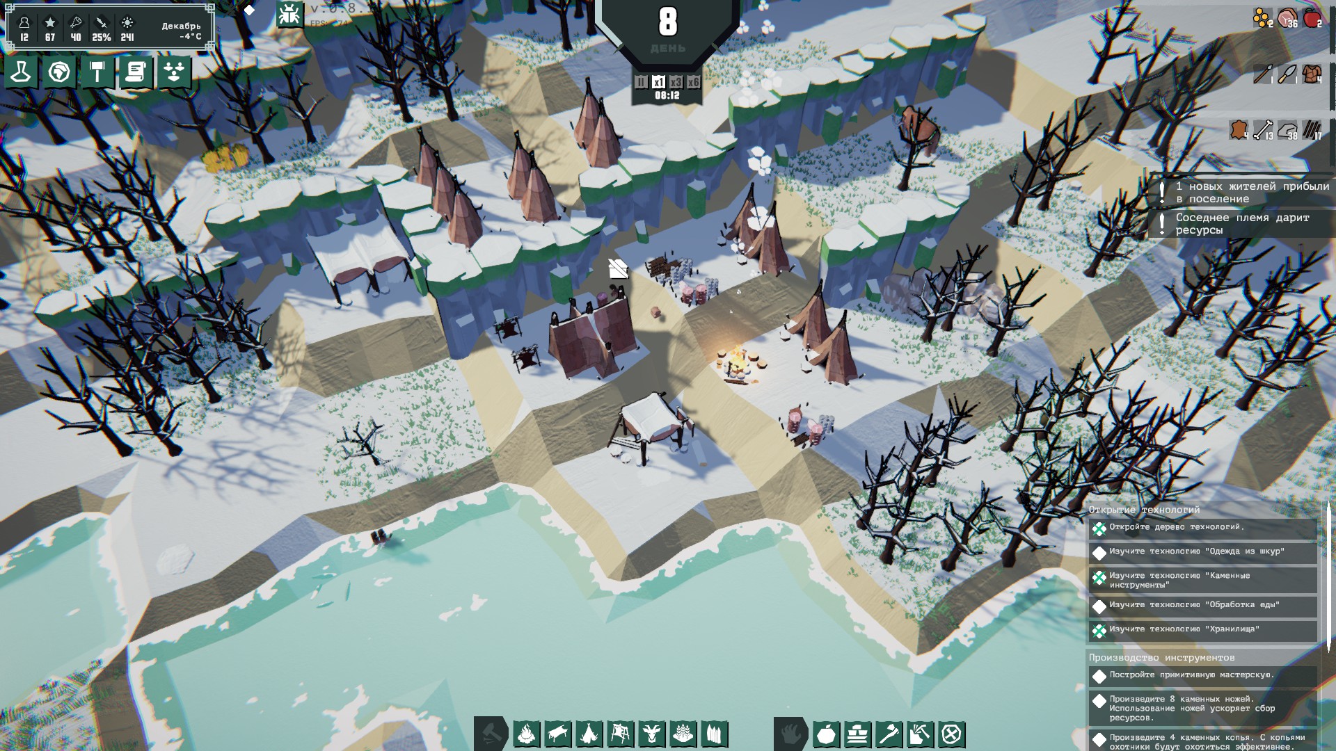 У меня впечатления от игры положительные. Хотя первая зима и кризис со шкурами заставили понервничать. В конечном итоге, пусть юниты и подтупливали, но стабильное выживание наладить вполне удалось.