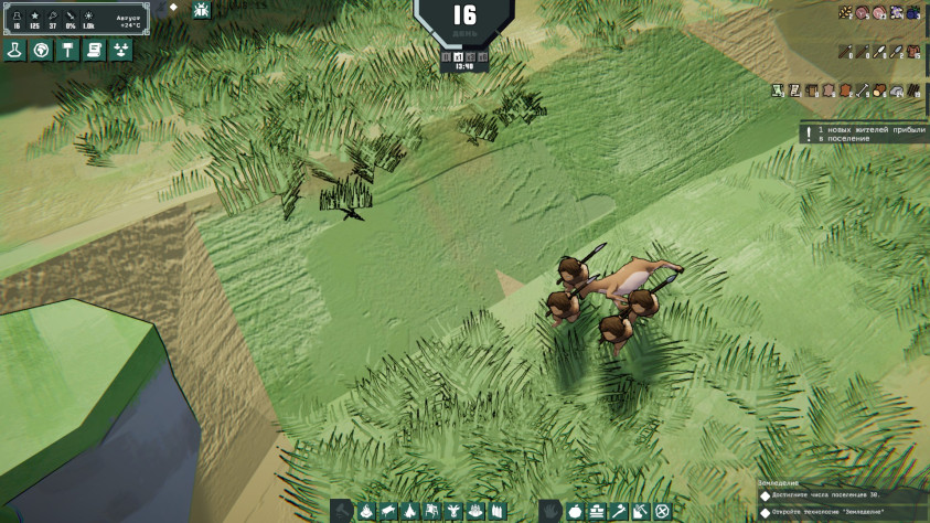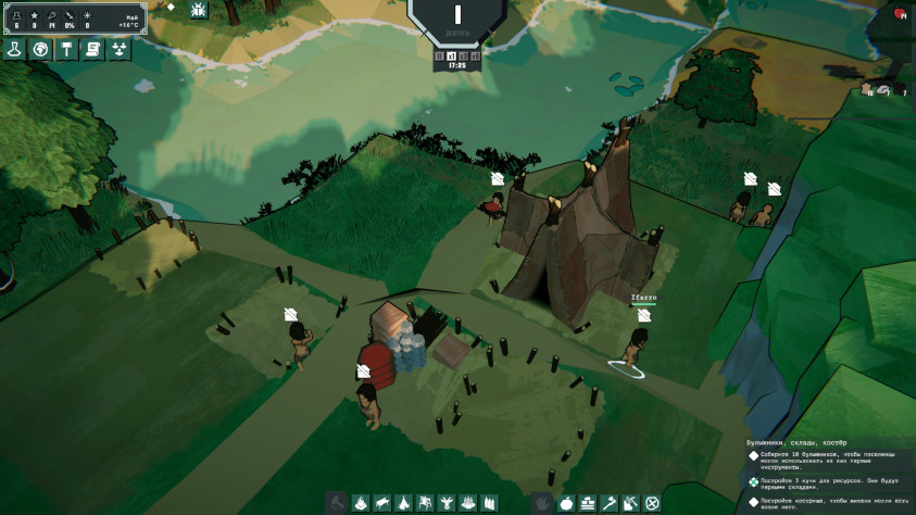 Ночью юниты принципиально не работают. Это выражается в бросании всего, что они несут на землю и отправку по домам. Всё бы ничего, но вот, допустим, они тащат с края карты оленя, на полдороги его кидают. А потом доблестно за ним возвращаются. На это прямо больно смотреть, на такие их действия. Хоть до хаты, что ли, тащили бы — всё равно же туда идут.