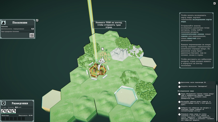 Игра не ограничивается только локацией нашего поселения. Есть и глобальный мир. По нему можно и нужно отправлять разведчиков, для исследования и добычи ценных ресурсов.