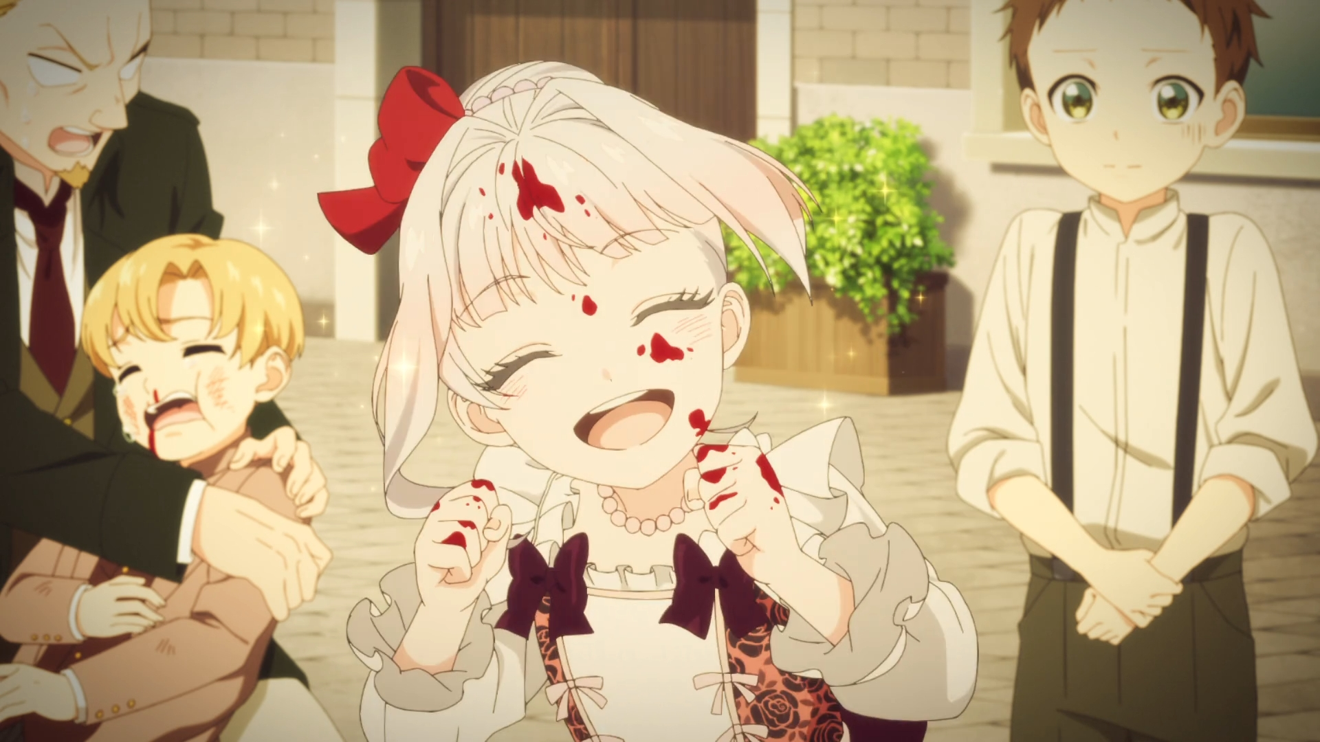 Главная злодейка, которая всеми силами хочет стать гг, принцессой и вообще самой любимой порядком раздражает, хоть и пытались чуть показать её бэкграунд, но вышло так себе. В этом мире главенствуют разного рода боги, которые могут давать людям при рождении свои благословения и особые таланты. Наша, например, Кровавая Леди, наделена даром бога времени Хроноа: она способна быстро перемещаться, останавливать время и всякое такое. Но небожители крайне капризны, ревнивы и непостоянны, любят подкидывать всякого рода трудности смертным потехи ради. И одна из богинь как раз будет связана с нашей злодейкой. У обеих тупейшие, просто вот смешные причины, но боги есть боги, а вот с объяснений обиженной жизнью злодейки недоумеваешь. По этой причине её ветка и сражение с ней не выглядит напряжённо. Да и в принципе мне аниме воспринималось как хорошая комедия-романтика, а не какой-то интригующий экшен, но это кому как.