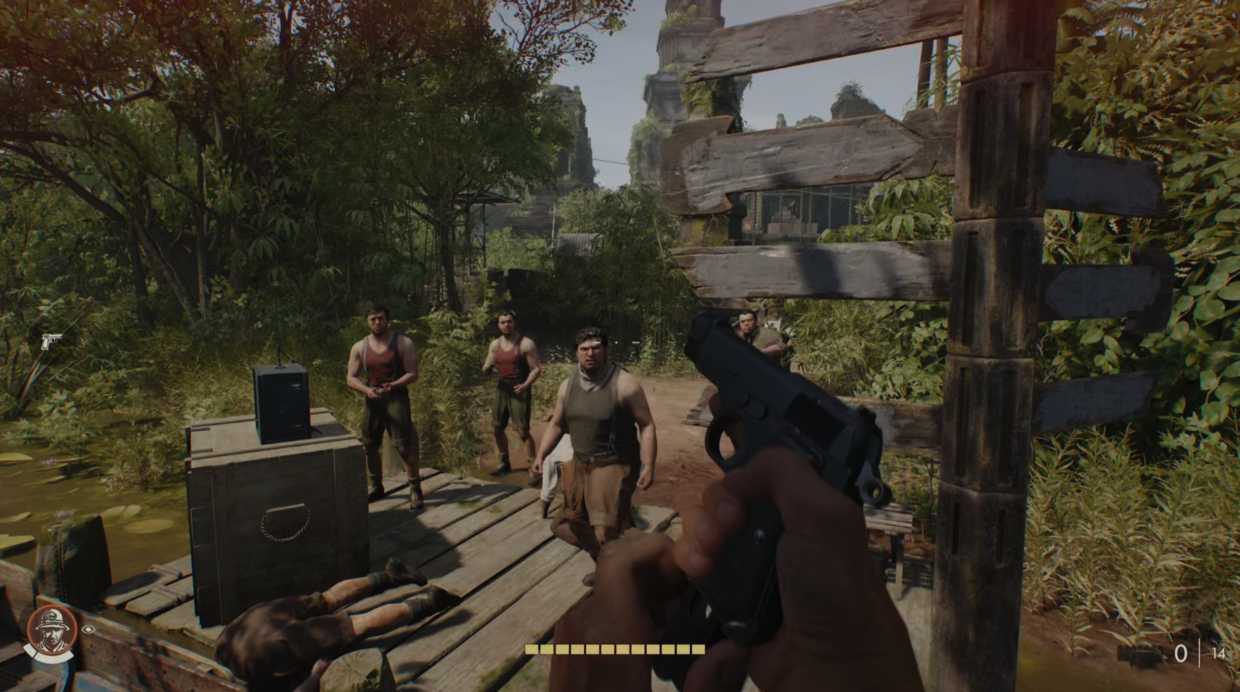 По факту ни одна механика полноценно не работает. Захотелось пострелять? Ну тогда будь готов к вечной нехватке патронов, пуленепробиваемым врагам, да и просто уже заранее рой себе могилу, потому что вероятность, что ты выживешь в перестрелке с ватагой врагов крайне мала. Идти напролом с холодным оружием наперевес, конечно, можно, но зачем, если обычно на локации внушительное количество врагов, которые просто задавят тебя числом (если ИИ внезапно обретет дар слышать и видеть,). Разработчики как бы недвусмысленно намекают игроку, что Инди вообще-то не Нейтан Дрейк, косить пачками врагов он не привык, поэтому, будь добр, садись на корточки, или найди костюмчик для маскировки, и займись уже наконец стелсом...