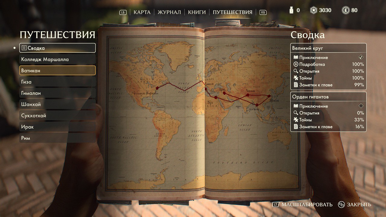 Когда разработчики создавали целых три больших локации — Ватикан, Гизу и Сукхотай, и эпизодические Шанхай, Гималаи и Ирак, напичканными всевозможными секретиками, сайд-квестами, головоломками, «собирашками», достопримечательностями для фотоколлекции... котиками в конце концов, мне кажется, они вряд ли хотели бы, чтобы их игру пробежали за два вечера. Хорошо, немного притормозим, поднимем с земли вечно слетающую шляпу, поправим хлыст и кобуру и отправимся исследовать этот мир вдоль и поперек! Навстречу приключениям, так сказать! Это должно быть увлекательно… наверное.