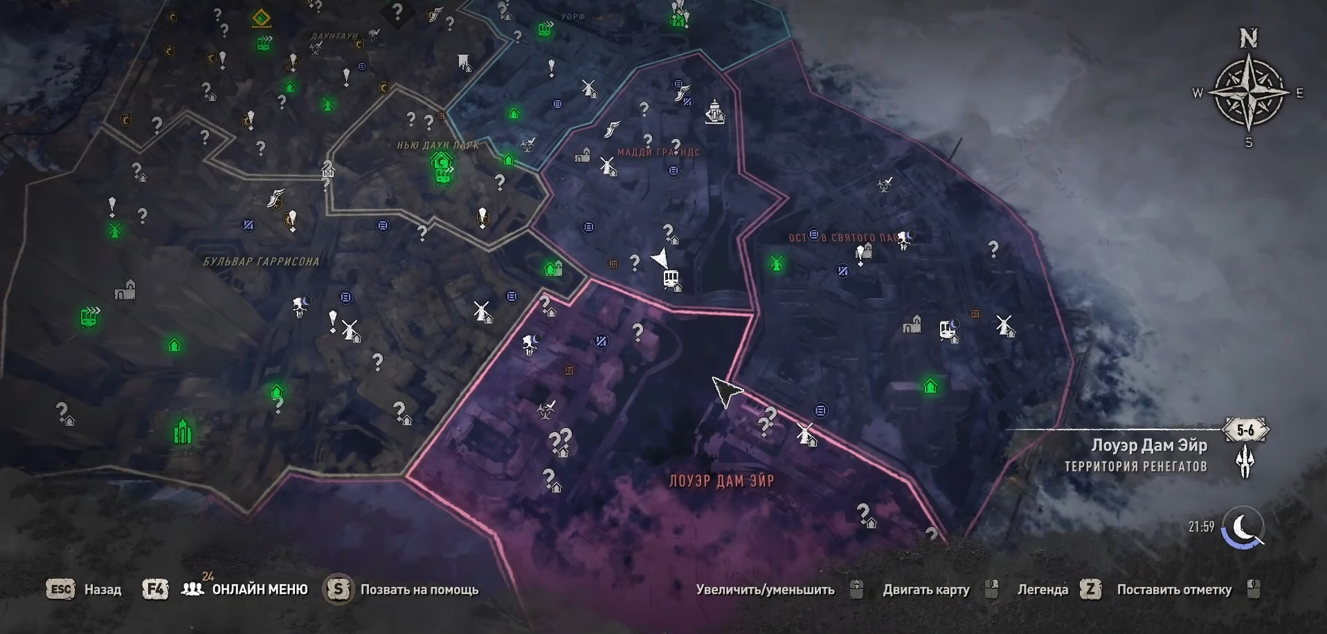 Надоело просто бежать? Зайди по пути на локацию, зачисть ее от зомби, подруби электричество и реши кому она отойдет — миротворцам или выжившим. Я, кстати, не особо придерживалась той или иной фракции в плане локаций. Так как выбор кому отдать территорию никак не влияет на сюжет, то это переходит в принцип выбора необходимости тех или иных плюшек, которые я получу от принятого решения. По итогу я раздала территории поровну и тем и тем. В любом случае я буду в выигрышном положении и мне еще безопасная зона откроется, чтобы скрыться от ночи.