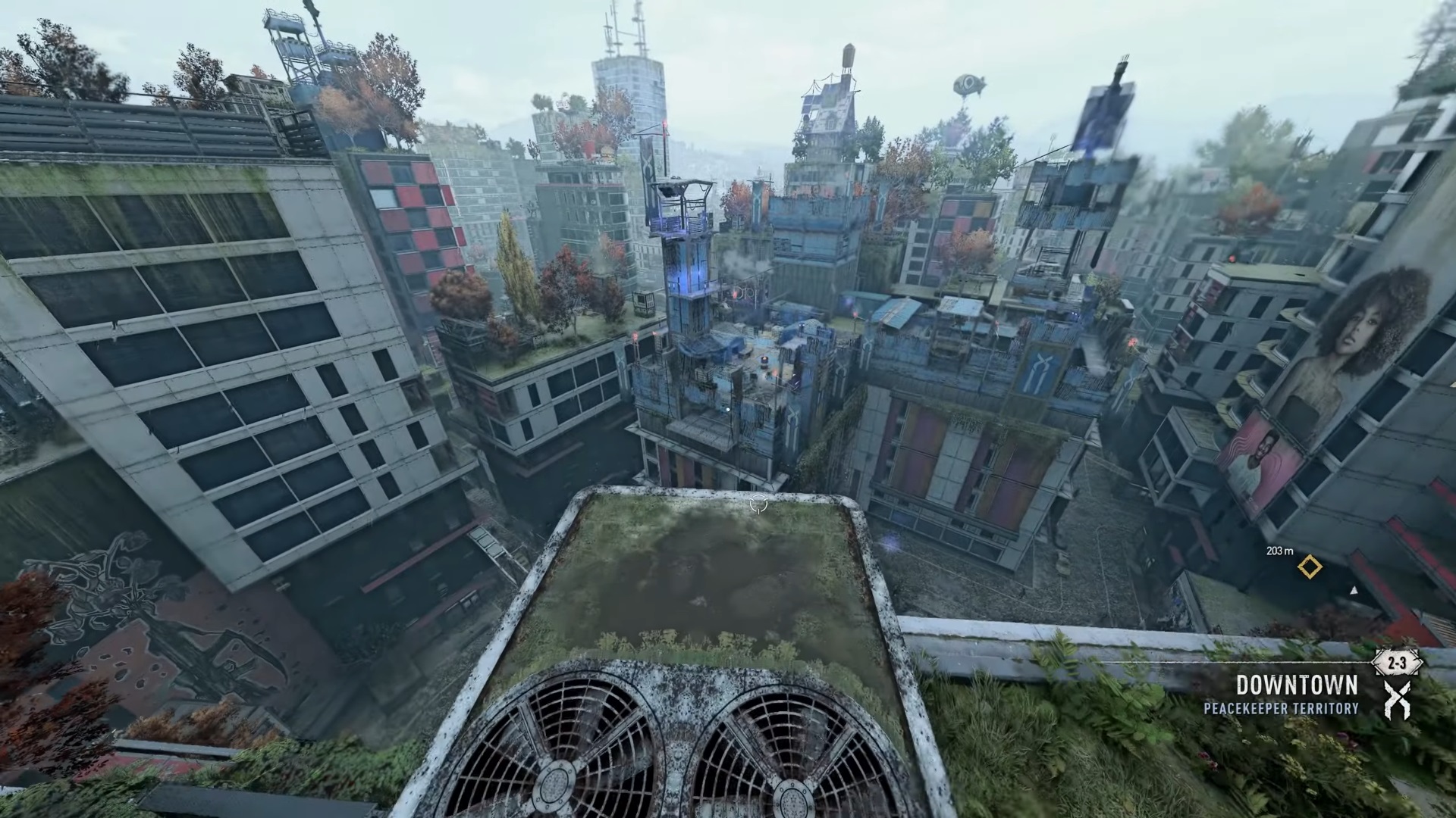 Впервые попав в открытый мир ДЛ 2 мне было немного волнительно. Ведь в некоторых играх полностью перерабатывают атмосферу и от этого теряется тот «вкус», полученный от предыдущей части. Здесь же меня встретил город Вилледор и не смотря на его новизну, атмосферу того самого ДЛ 1 удалось сохранить. Светлый город переживший зомби-апокалипсис, забытые улочки и куча кусак на улицах. Если бы не знала, что запустила вторую часть, то могла бы подумать, что просто попала в новый город в первой части.
