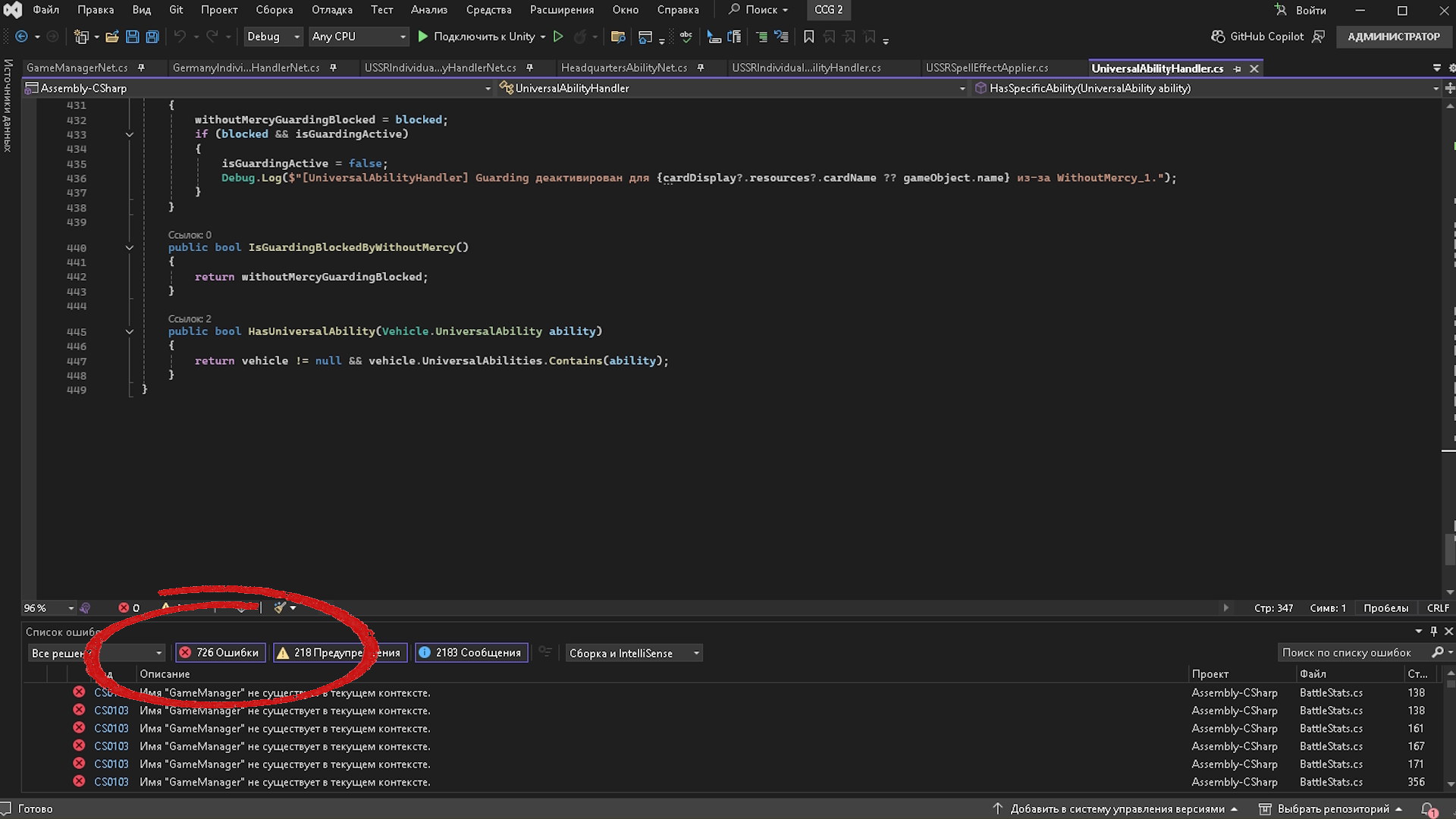 И этот «ужас», при сильном желании, можно даже назвать игрой, т.к. в ней уже присутствовали многие ключевые механики: поведение каждого отдельного типа карты техники, ИИ оппонента, частично были реализованы способности танков и т. д. Я, конечно, не утверждаю, что сразу после завершения работающего прототипа игры надо её сразу всем это показывать в таком виде. Подтянуть графику и поправить то, что не нравится, — несложно и занимает не так много времени. Я и сейчас этим постоянно занимаюсь. А если сразу тратить ресурсы на доведение второстепенных элементов до идеала, забив на ключевые механики, скорее всего, сил на завершение проекта просто не хватит.