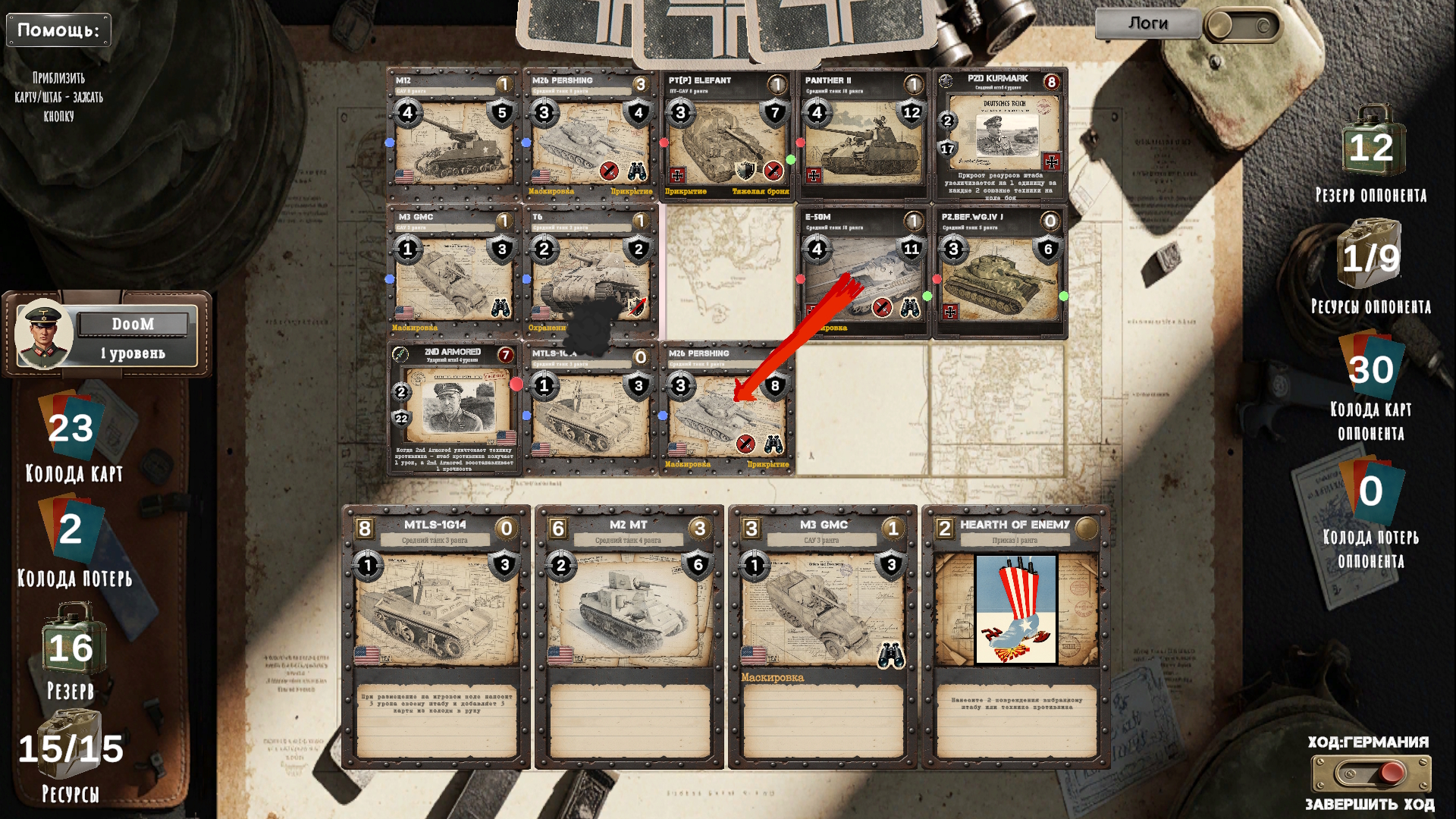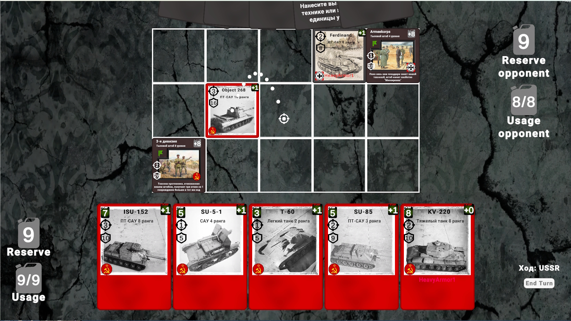 Тот, кто придумал для этой игры механики взаимодействия разных типов карт танков, — настоящий гений. Карта каждого типа танков играется именно как этот тип танков: например, лёгкий танк может совершить два действия передвижения за ход, что позволяет ему «засвечивать» вражеские техники или прорваться к вражеским САУ. То есть карта лёгкого танка реально действует как лёгкий танк и может подсвечивать врагов. ПТ-САУ имеет механику, которая позволяет ей всегда атаковать первой и не получать урон от контратаки, если враг был уничтожен её атакой. Это даёт ощущение настоящей ПТ-САУ, действующей из засады. И так у каждого типа техники.
