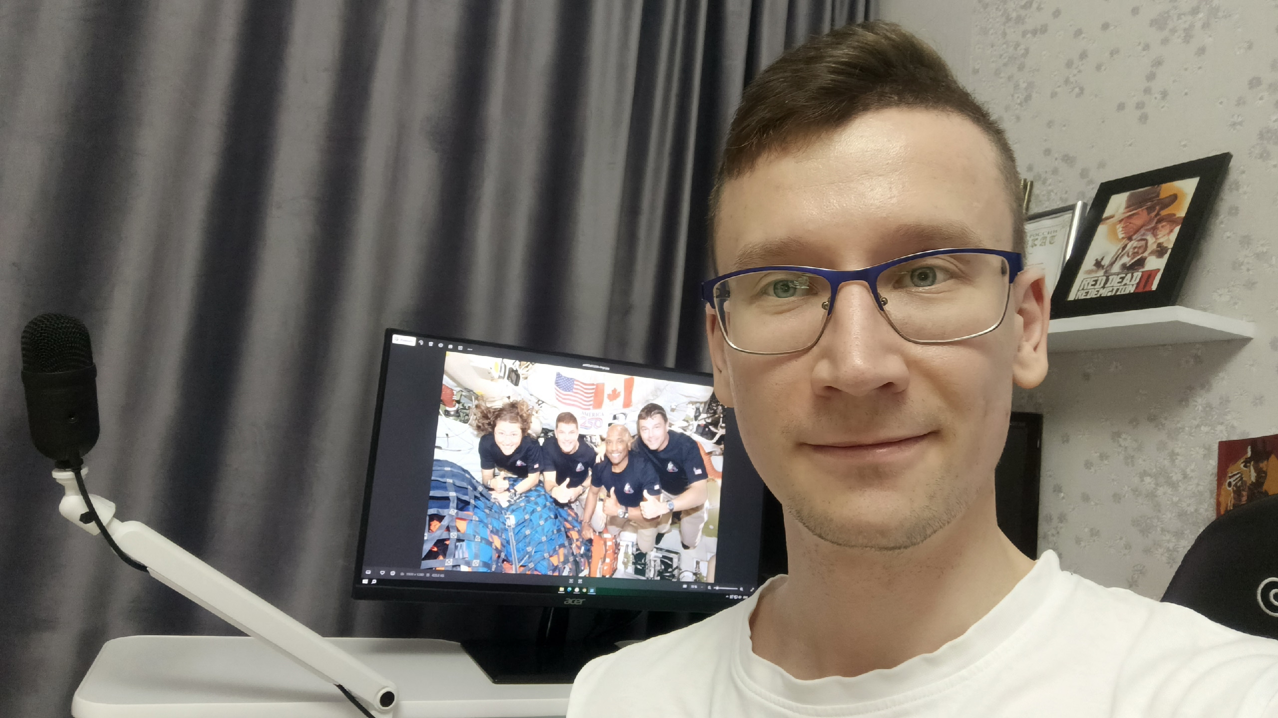 Сейчас он работает над переводом той части стрима, где космонавты совершали облёт. По словам Олега: