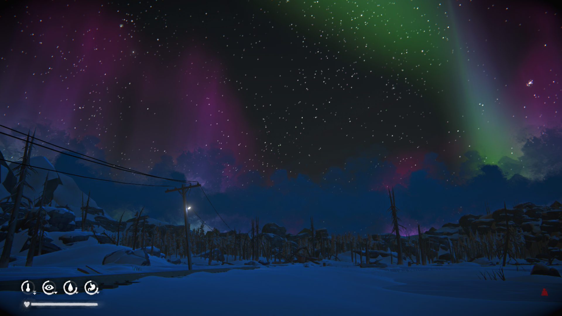 Северное сияние в The Long Dark, по моему мнению, - очень хороший ограничитель и ответ на большинство вопросов к игре. Во время этого события вся электроника «оживает»; к примеру, фонарные столбы начинают светить, мониторы горят и прочее. На мой взгляд, это очень хорошая идея для ограничения действий игрока и ответ на некоторые вопросы, которые могли появиться.