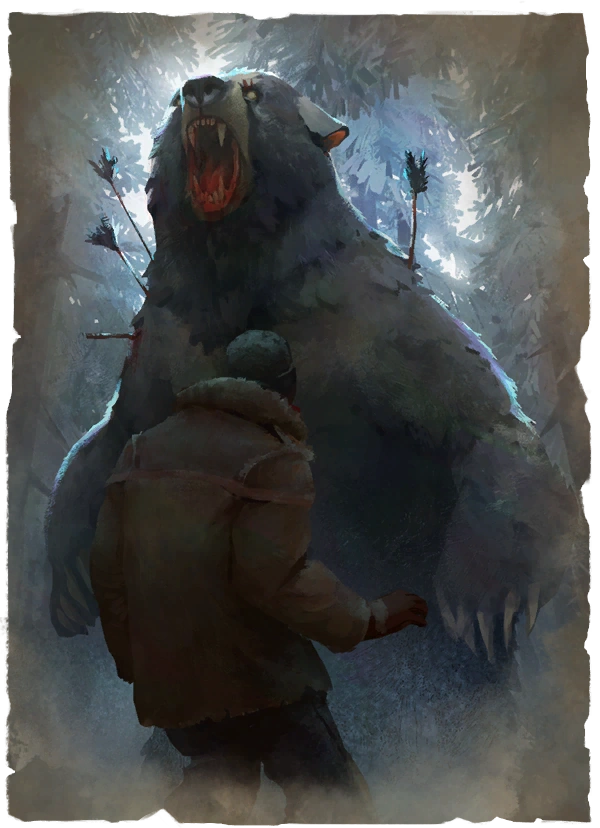 После починки радио, зверолов и герой понимают, радио теперь исправно, но всё равно не работает. Джереми рассказывает герою историю про нашего мишку, который оказался не просто обычным медведем, а очень старым и очень умным медведем, и про копье, которое «забрало душу медведя». Джереми не верит в эту историю про душу, но подмечает, что копье эффективнее пули, которая медведю нипочём. Затем он отправляет нас за этим «чудо-копьем», которое находится в доме другого охотника.