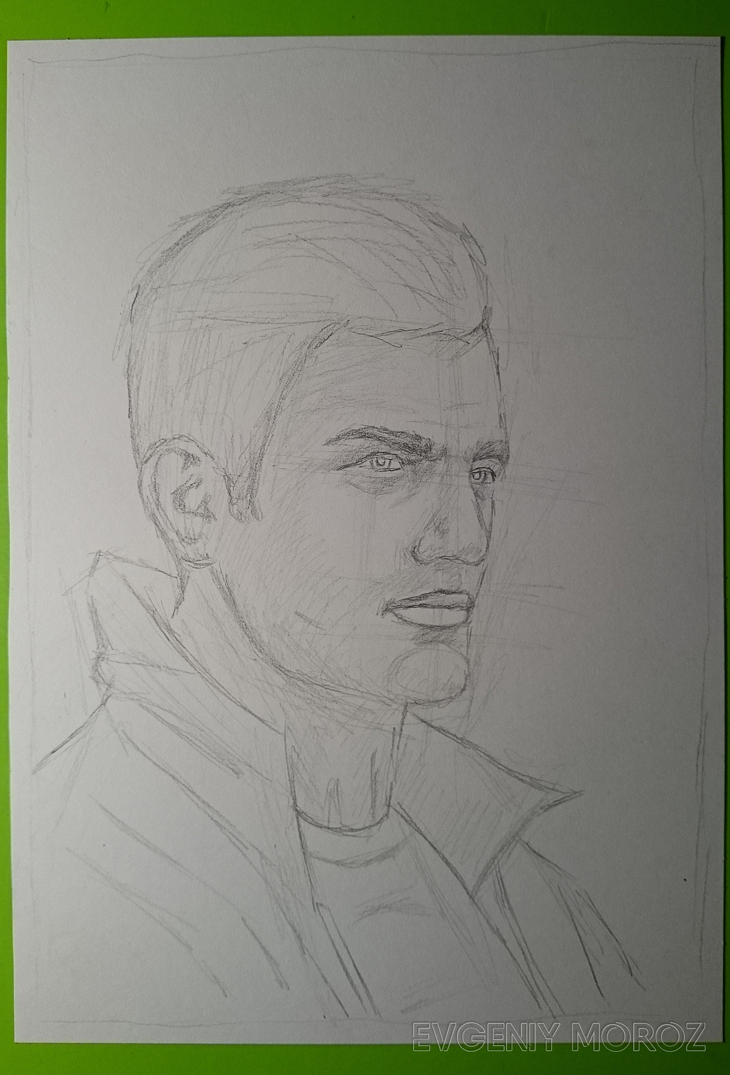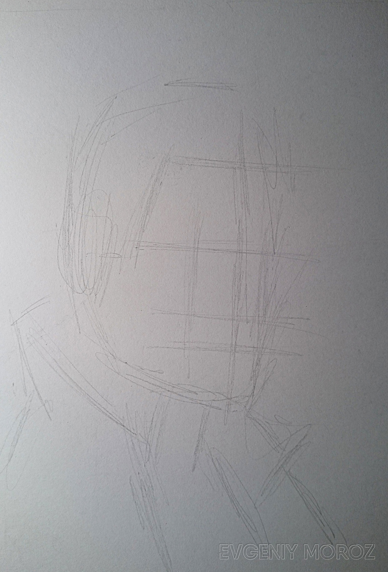 Во время работы использовал: чертёжную бумагу (формат А5), механический карандаш, синюю шариковую ручку Bic Cristal.
