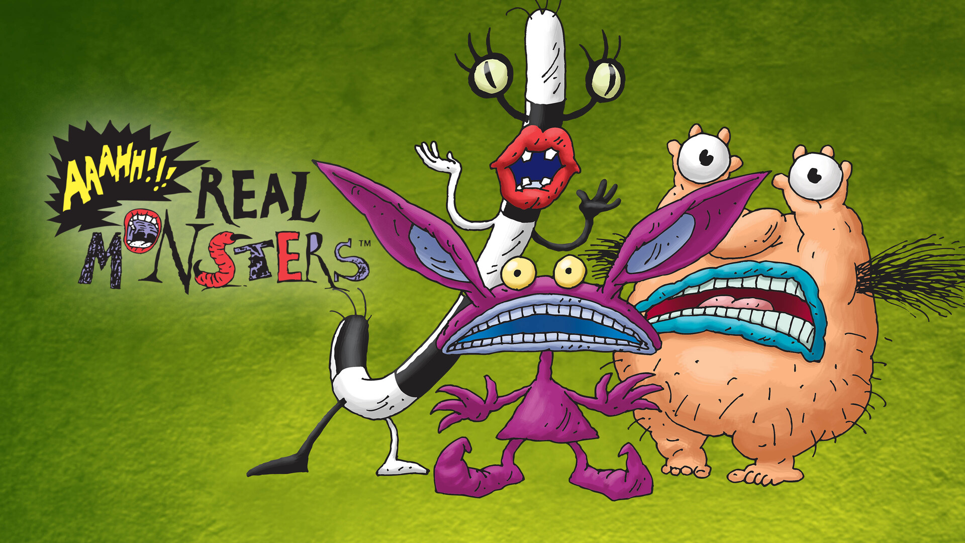 А для этого вернёмся в начало 90-х. На фоне удачного запуска Rugrats, захотел Nickelodeon ещё один мульт многосерийный и поручил он создание такового. Двое сыновей Класкичупов продолжали работать генераторами идей, и на этот раз главными героями сериала должны были выступить монстры, о которых дети говорили, которых дети любили. Имели ли они ввиду подкроватных монстров или жила семья в неблагополучном районе с соответствующим контингентом – не ясно. Ясно то, что идея была одобрена, сценарий написан, всё нужное анимировано и в 1994 году на Nictoons вышел мультсериал «Аааа!!! Настоящие монстры» (Aaahh!!! Real Monsters).
