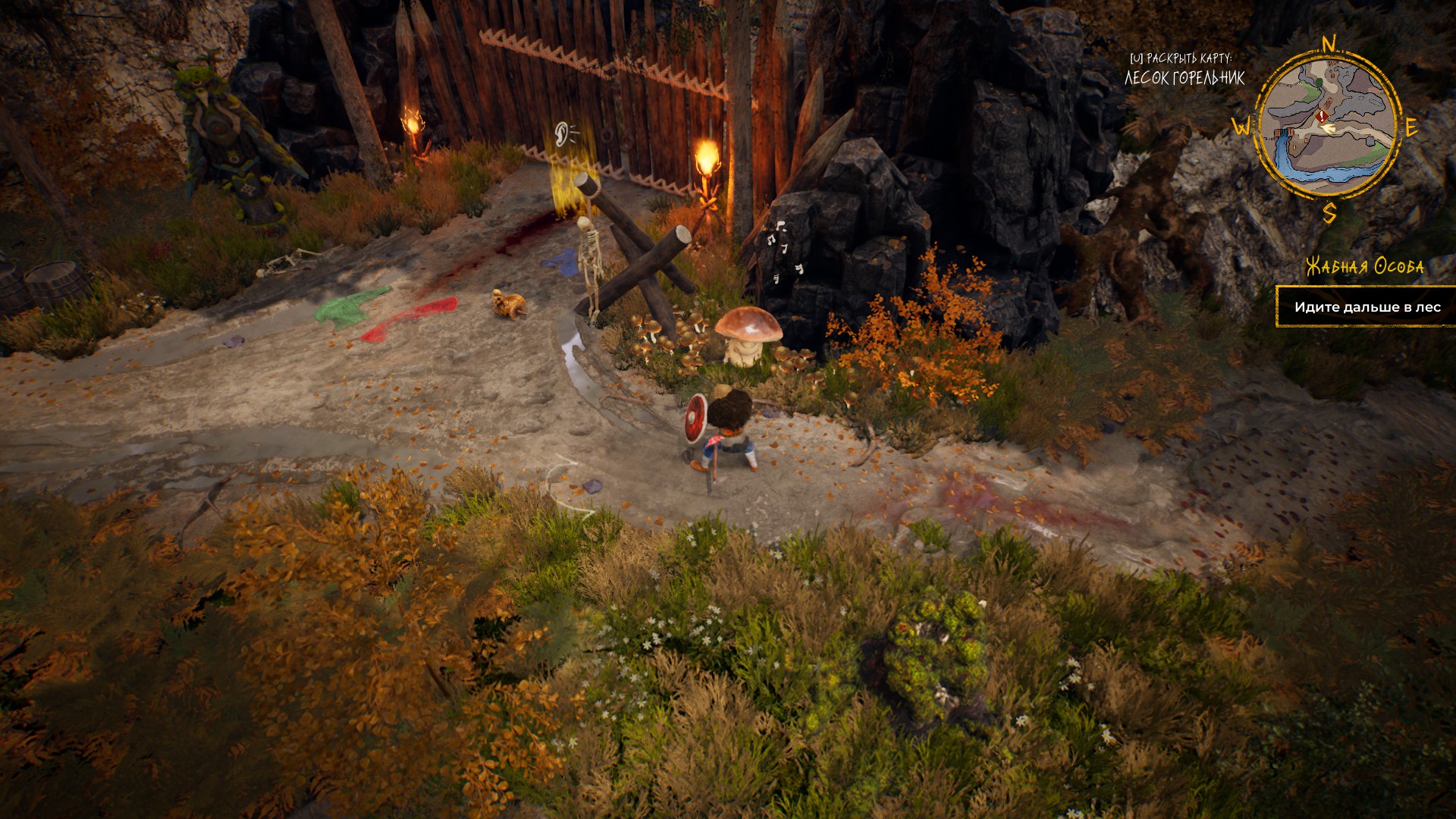 Танец у грибов-боровичков бодренько восстанавливает здоровье. А чтоб танец начался — надо убрать из рук оружие на кнопку R.