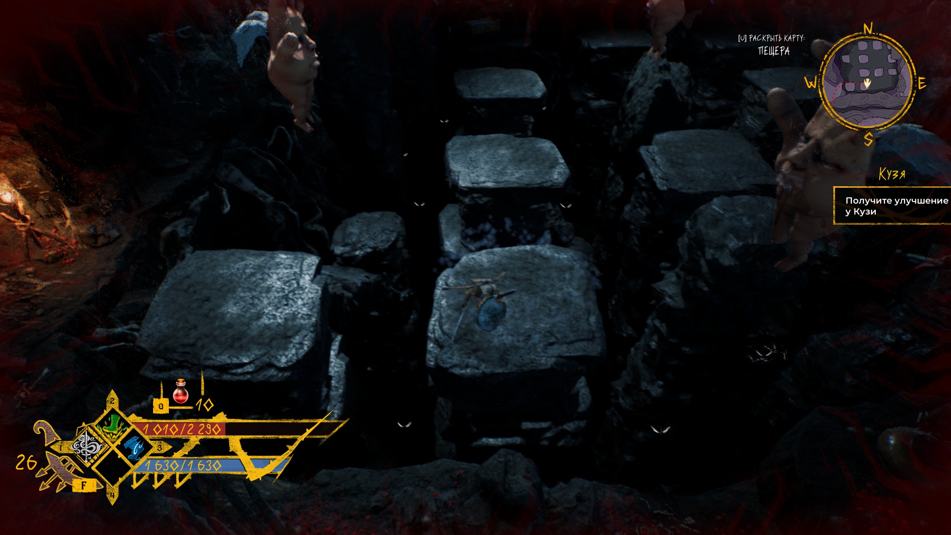 Герой очень неуклюже прыгает на кнопку Е. Особенно это проявилось в пещере. Стоило бы как-то половчее/побыстрее чтоб он это делал, чтоб, например, зона «сцепления» с активным действием была побольше и включалась шустрее.