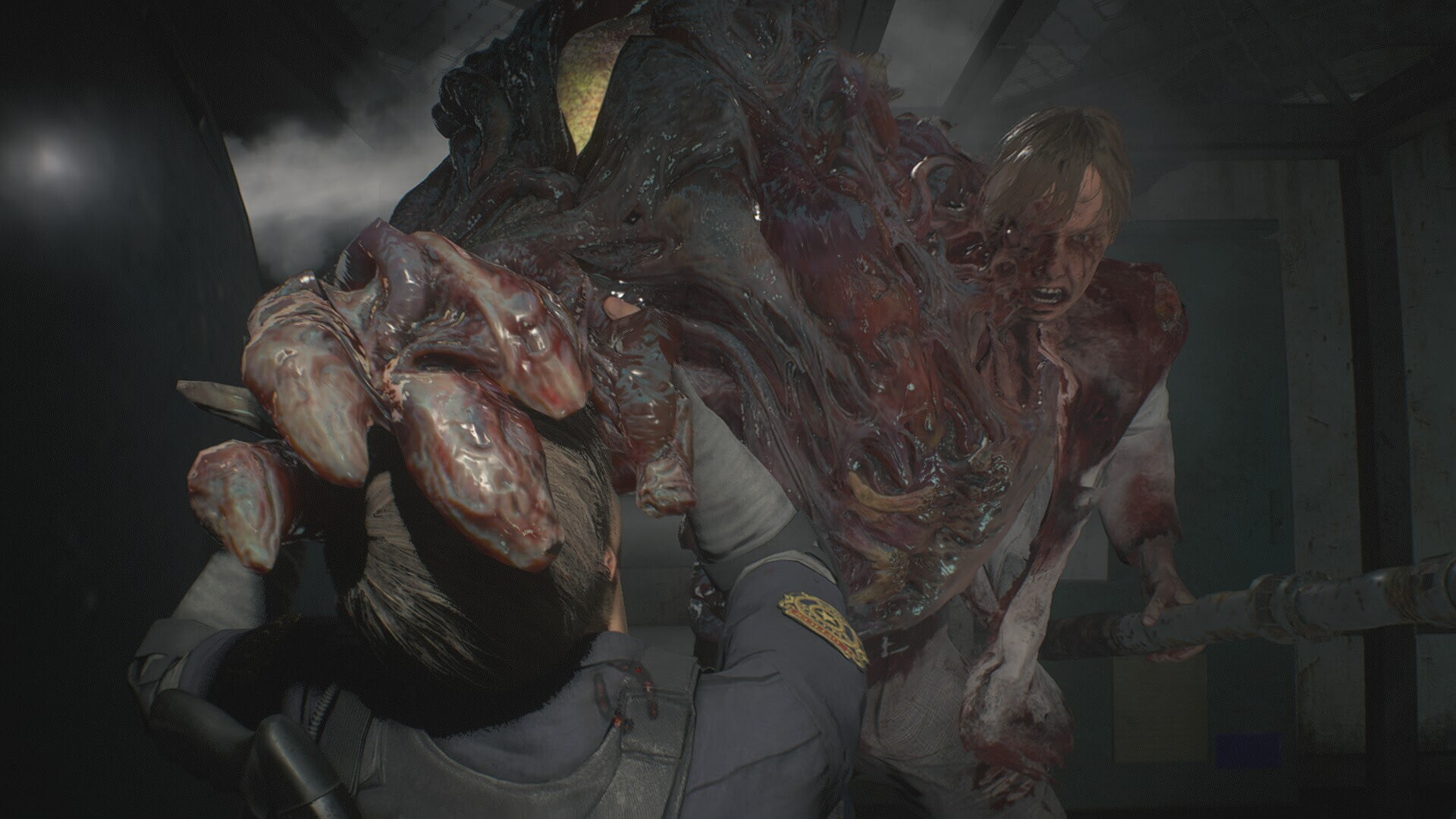RE2 вообще самый кривой из ремейков Capcom, и несмотря на всю кинематографичность картинки здесь много изъянов, которые скорее ожидаешь от инди-хоррорв в Steam. Те же лагающие текстуры; те же зомби, которые движутся с пониженным FPS, хотя находятся не где-то на горизонте, а в 10-ти метрах от тебя. Просачиваться сквозь двери они тоже пытались — и вообще двери в этой игре доставляли существенные неудобства, если за ними кто-то стоял.