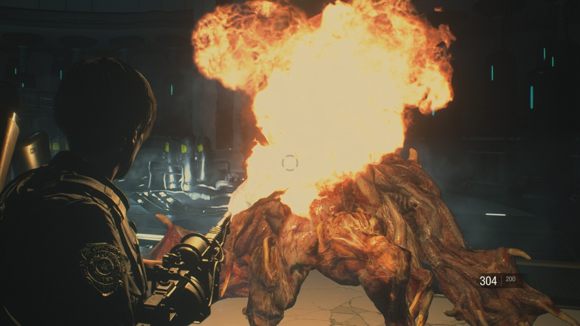 При всём акценте на выживании, в ремейке присутствуют два босс-файта, требующие от тебя активно вносить урон (вообще три, но в промежуточном бою от тебя достаточно вовремя уклоняться и нажимать кнопку погрузчика).