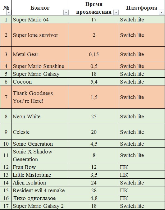 Так появился «Бэклог Синглплеера». Табличка, куда я заношу всё, во что хочу сыграть, и отмечаю пройденное.