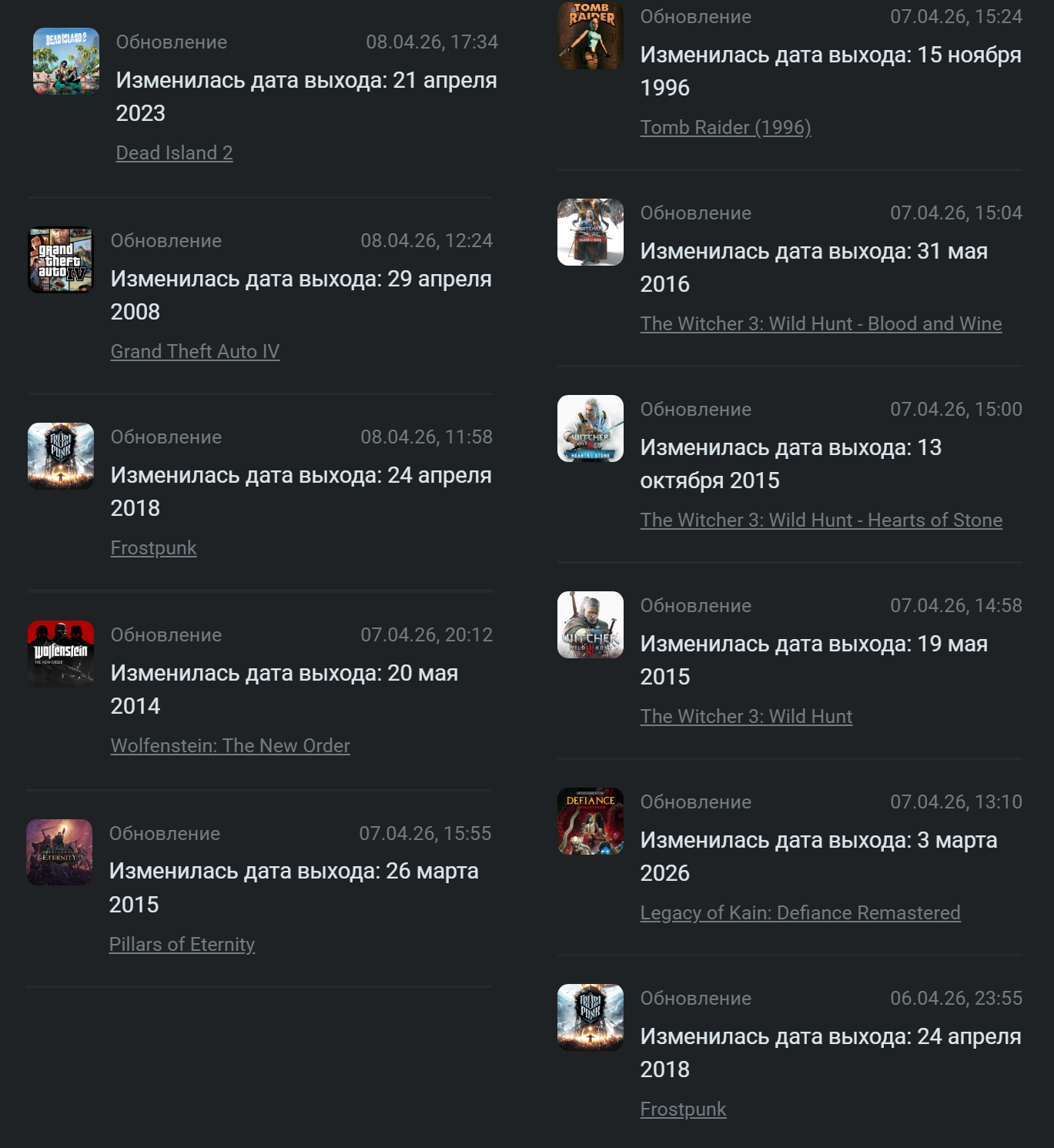 Просто любопытно. В последние дни по очень многим играм приходит уведомление, что изменилась дата выхода. Это столько ошибок было или в чём причина? 🤔