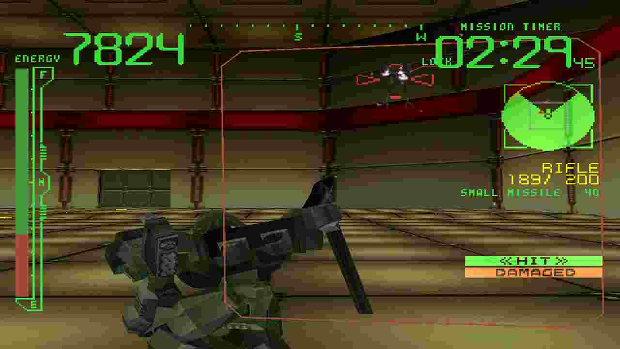 Старые игры принято считать невероятно хардкорными и сложными, но мало кто задумывается над тем, что делало некоторые из них таковыми. Чаще всего это было связано с совершенно адским управлением, впрочем мне, как любителю Соулсов и творчества From Software не привыкать, однако их игры для PS1 отличаются особо... изощрёнными решениями. Вероятно потому, что многие из них выходили до появления дуалшока, а сделать фиксированную камеру было либо невозможно (King's Field), либо бессмысленно. В Armored Core как раз последний случай, камера находится за спиной нашей боевой машины, крутится влево-вправо, вверх-вниз, причём по вертикальной оси перемещение осуществляется с помощью L2-R2. Сказать, что это неудобно - не сказать вообще ничего, поэтому даже обучалку я прошёл только со второго раза.