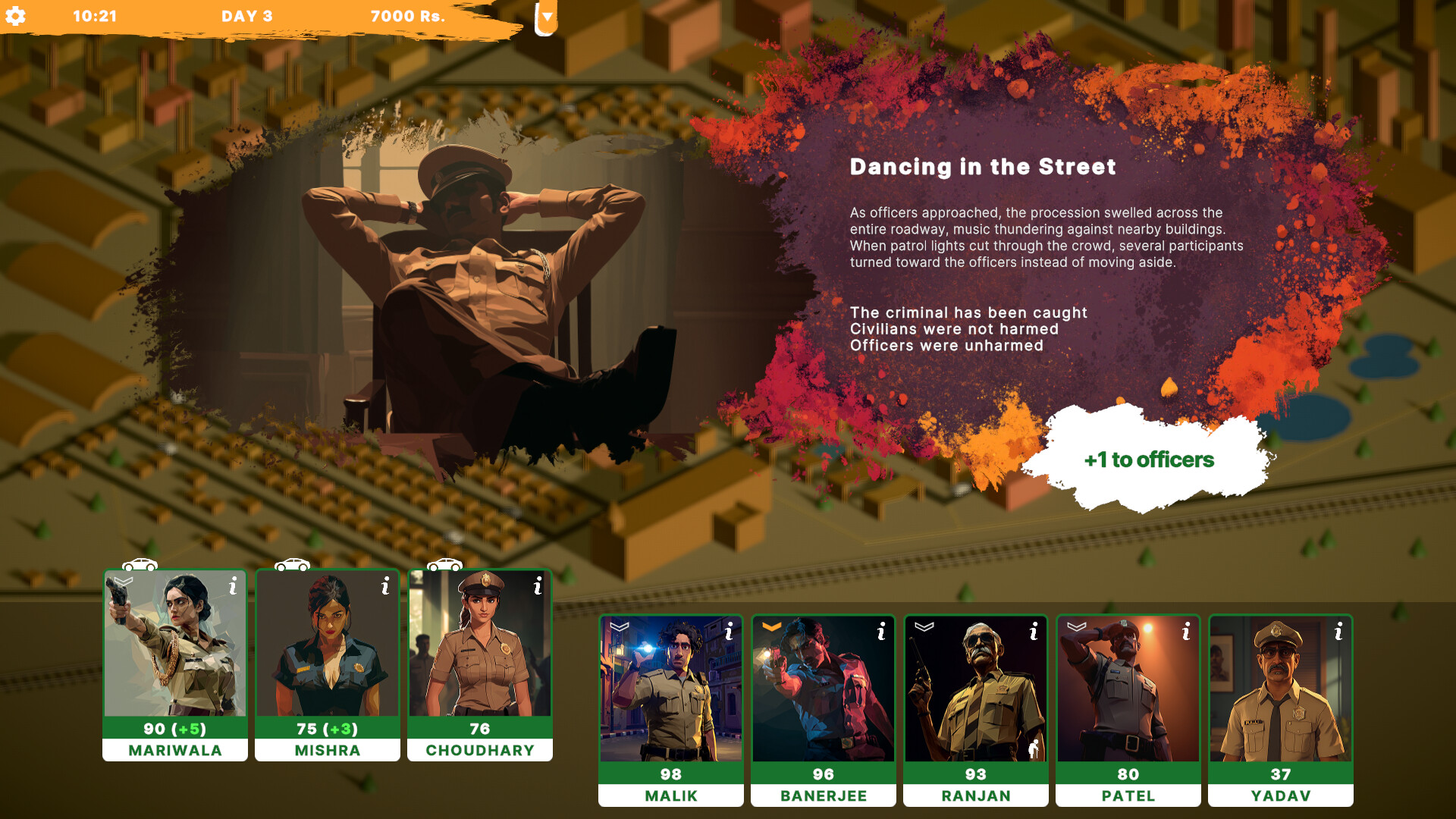 Возглавьте полицию в нуарной Индии. Управляйте офицерами, реагируйте на вызовы и улучшайте свою команду. Балансируйте между преступностью, коррупцией и социальными конфликтами. Каждое решение имеет последствия.